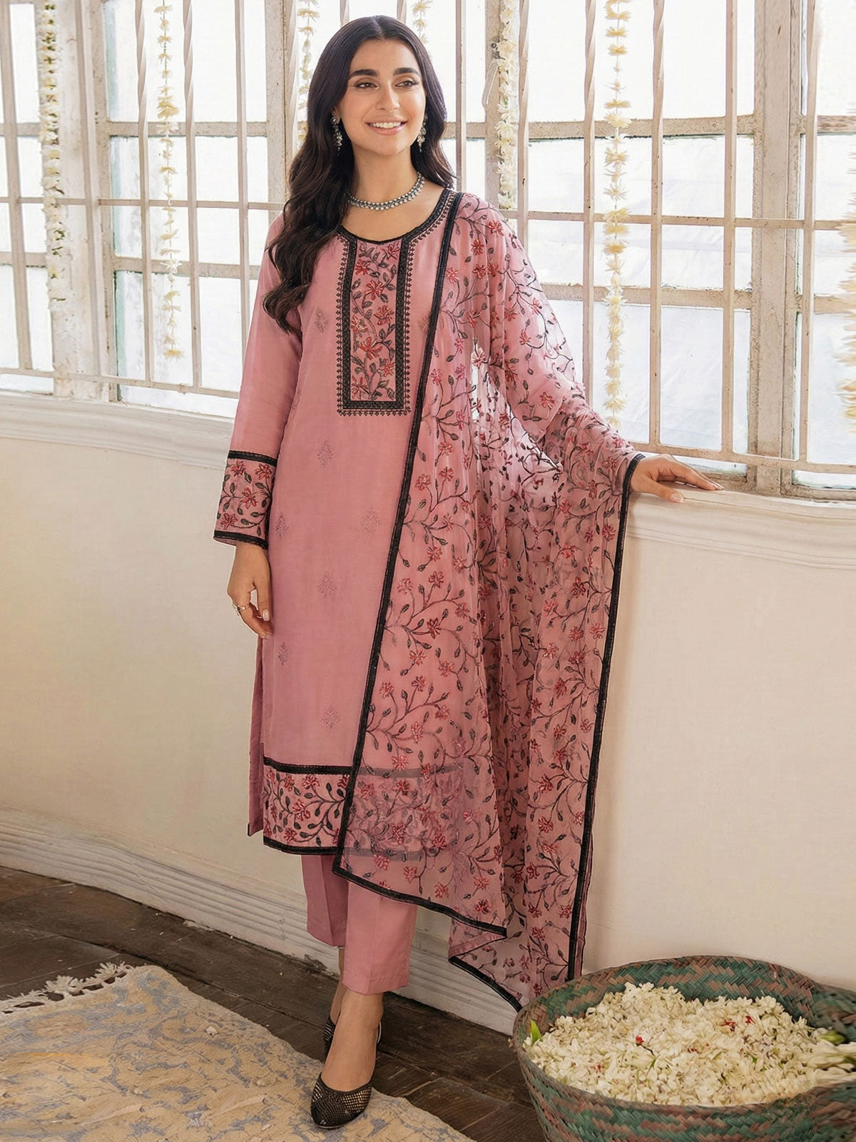 Elevate your wardrobe with this Pink pant style suit, expertly crafted in fluid georgette fabric that drapes with refined elegance. The ensemble features meticulous thread embroidery and sequin detailing that create striking textural depth and luminous appeal, perfect for both festive celebrations and contemporary casual occasions. The tailored pant silhouette ensures a modern fit, while the coordinating dupatta completes the sophisticated look. This versatile piece seamlessly transitions from special events to everyday wear, delivering effortless grace and timeless style.