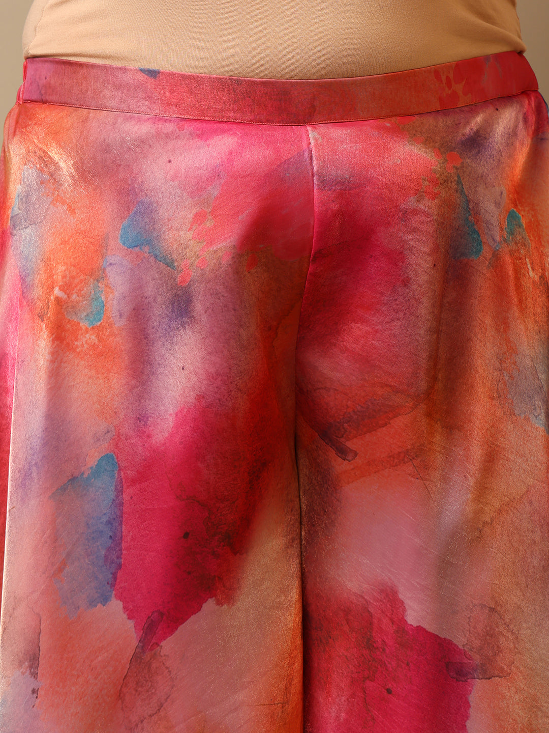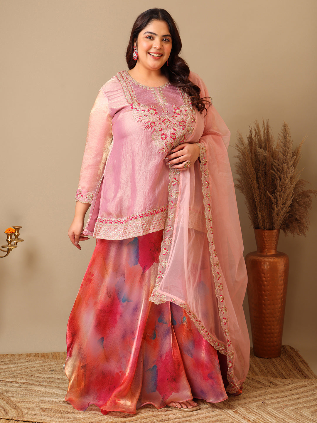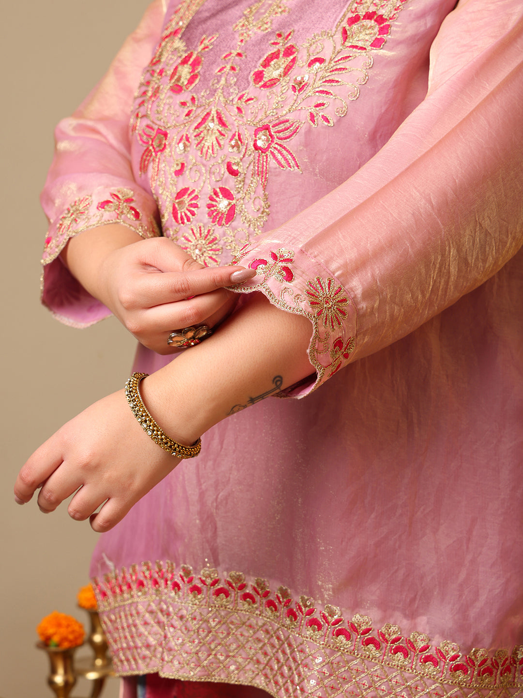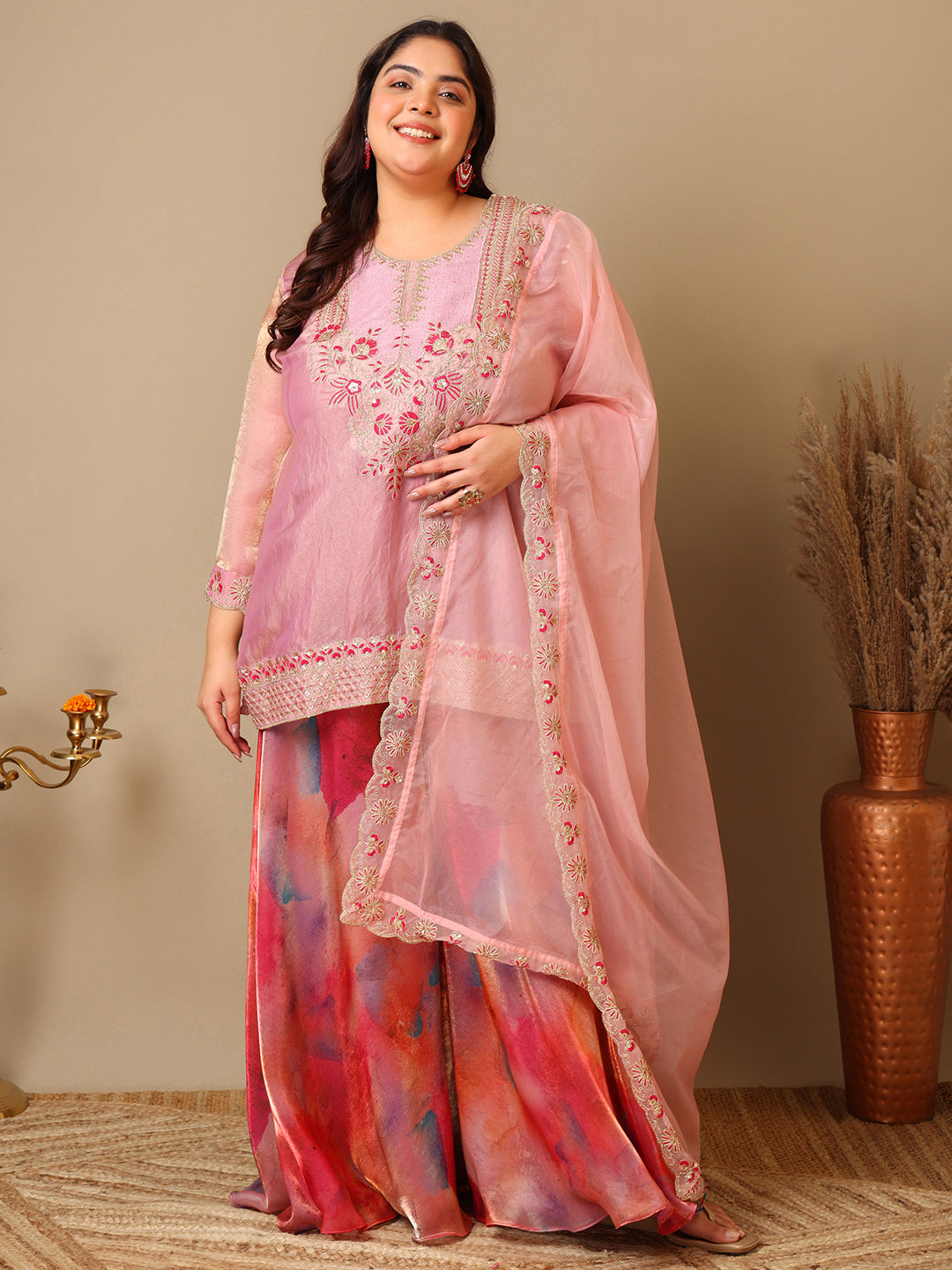 Pink & Red Embroidered Kurta with Palazzos & Dupatta
