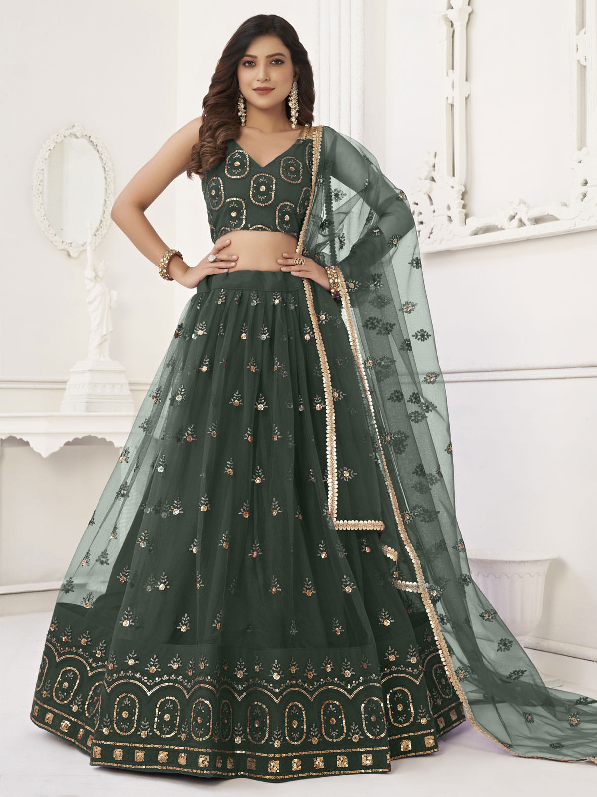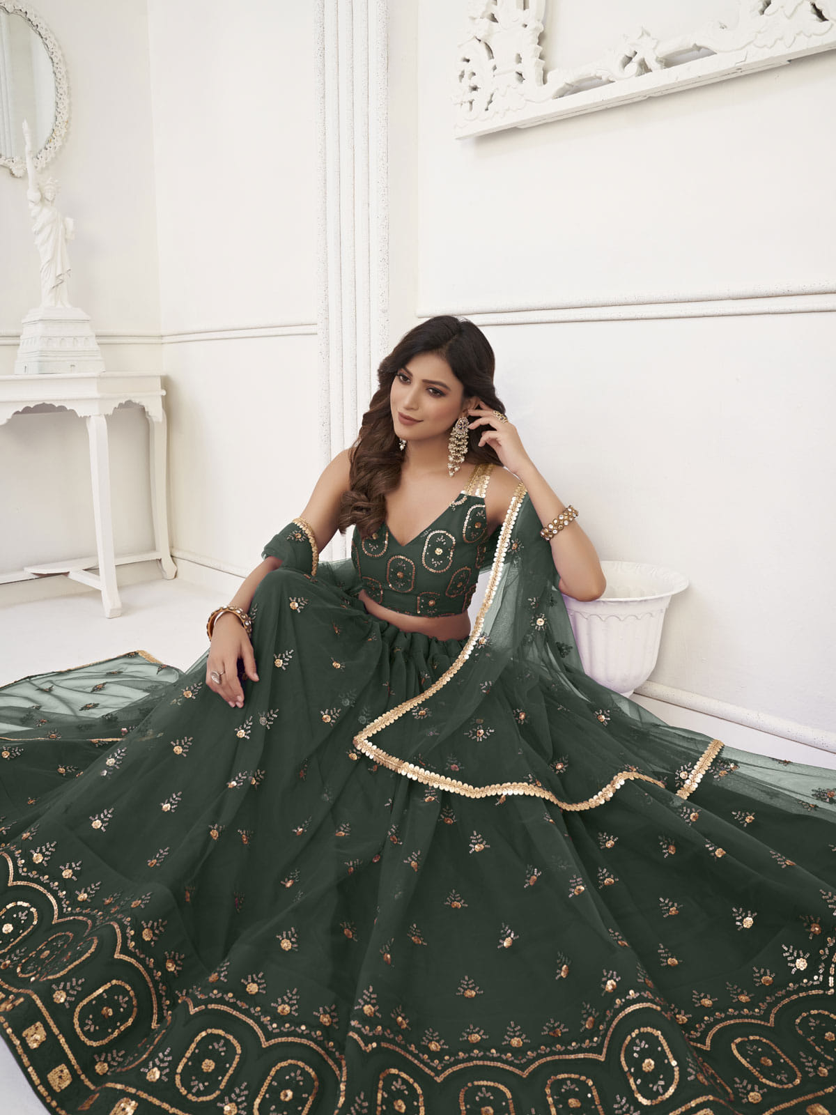 Elevate your ethnic style with our Precious Green Sequins Net Mehendi Wear Lehenga Choli. Featuring intricate embroidery and dazzling sequin detailing, this ensemble exudes traditional charm and contemporary allure. The semi-stitched lehenga can be adjusted up to 42 inches, while the matching butterfly net dupatta adds a touch of elegance. Perfect for weddings, festivals, and cultural celebrations. Pair with statement earrings and heels for a sophisticated look.