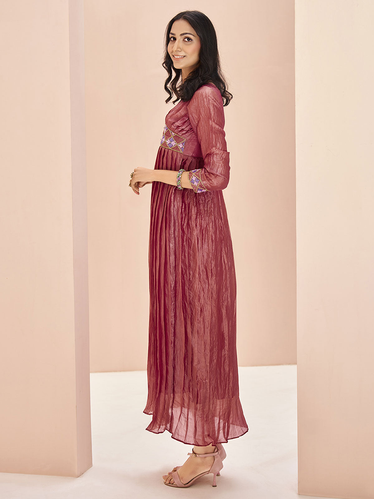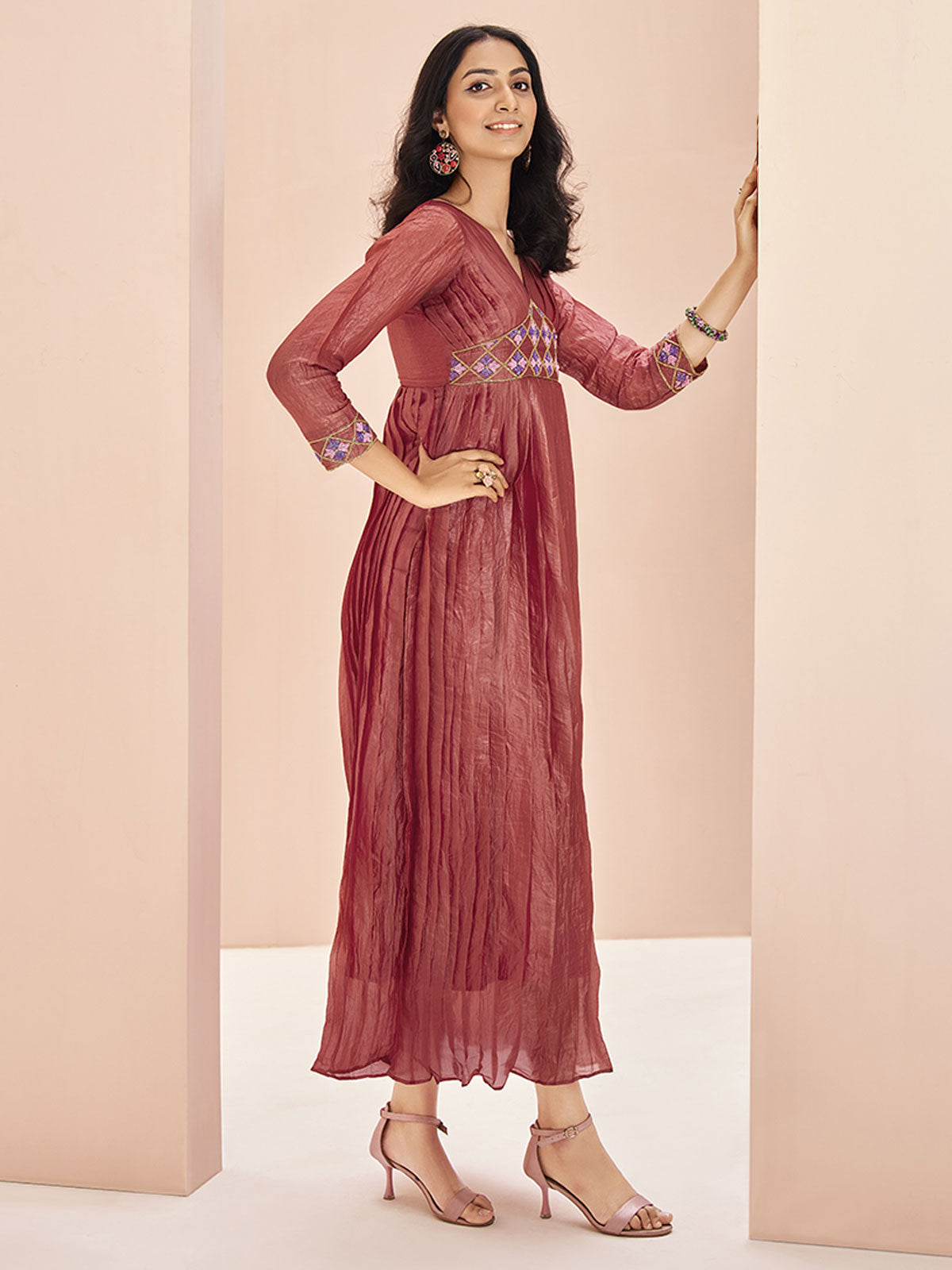 Ready to Ship products are dispatched within 3 days. Our usual shipping time is around 7 days for items bought unstitched / semi stitched, items bought with Tailoring Options are about 10 - 12 days shipping time.