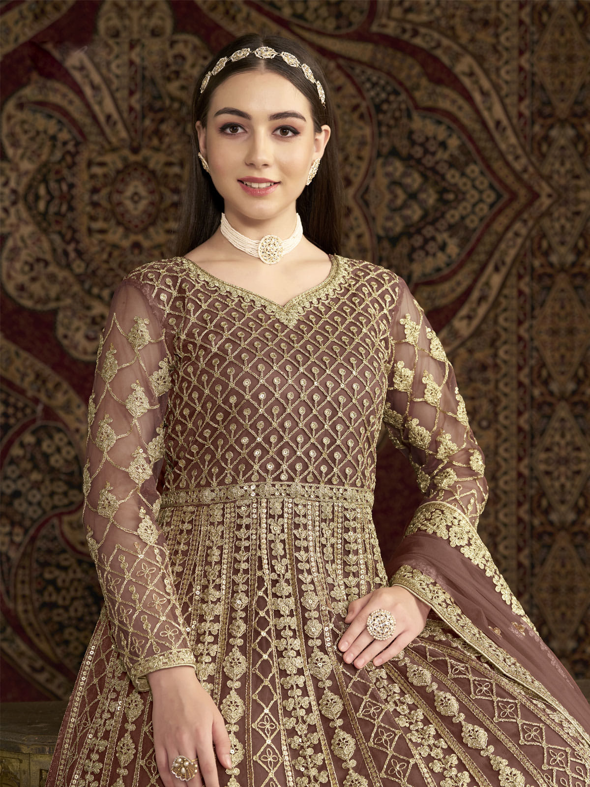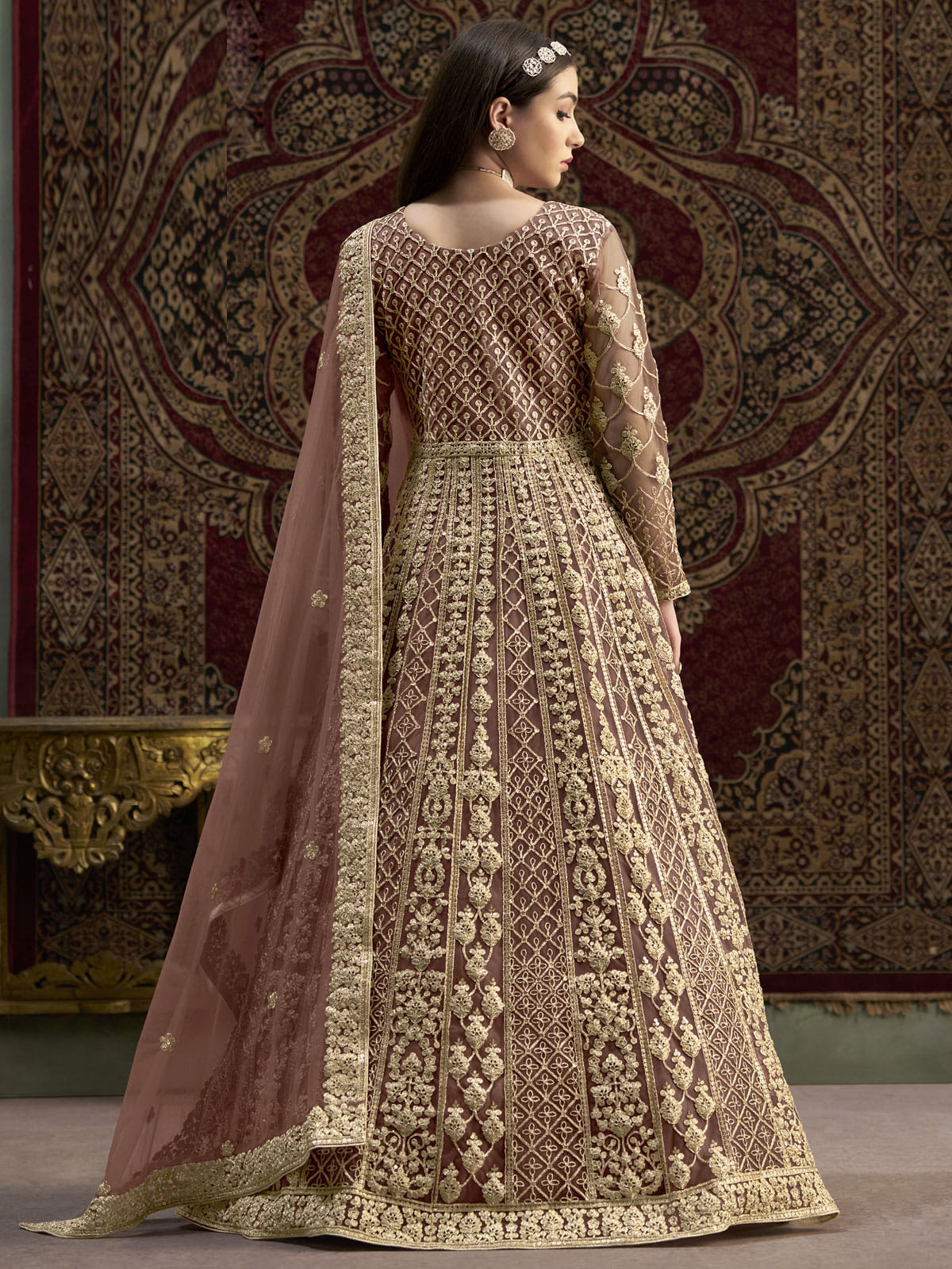 Enhance your festive wardrobe with our Rose Pink Traditional Embroidery Wedding Anarkali Suit. The premium net top is adorned with cording reshamkari zari embroidery and sequence work, paired with silk santoon pants and lining for comfort. The heavily embellished border and butti-embroidered dupatta add to the charm. Complete your look with golden jewelry and stilettos for a glamorous and elegant appearance.