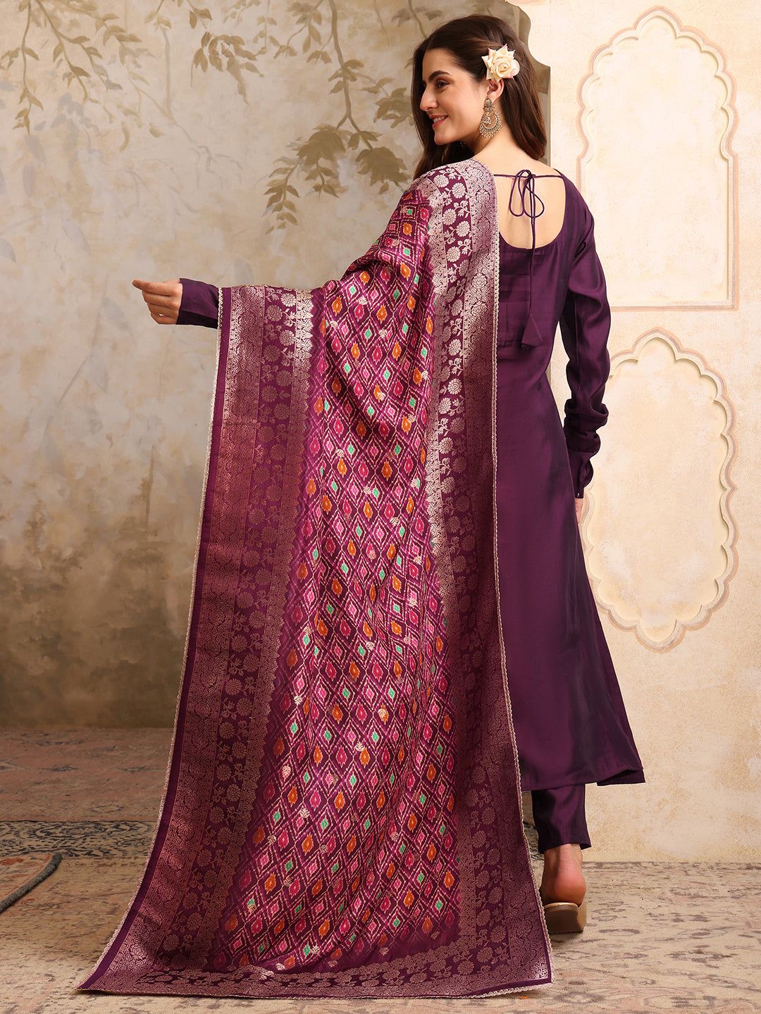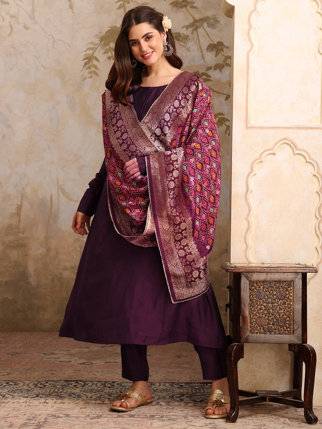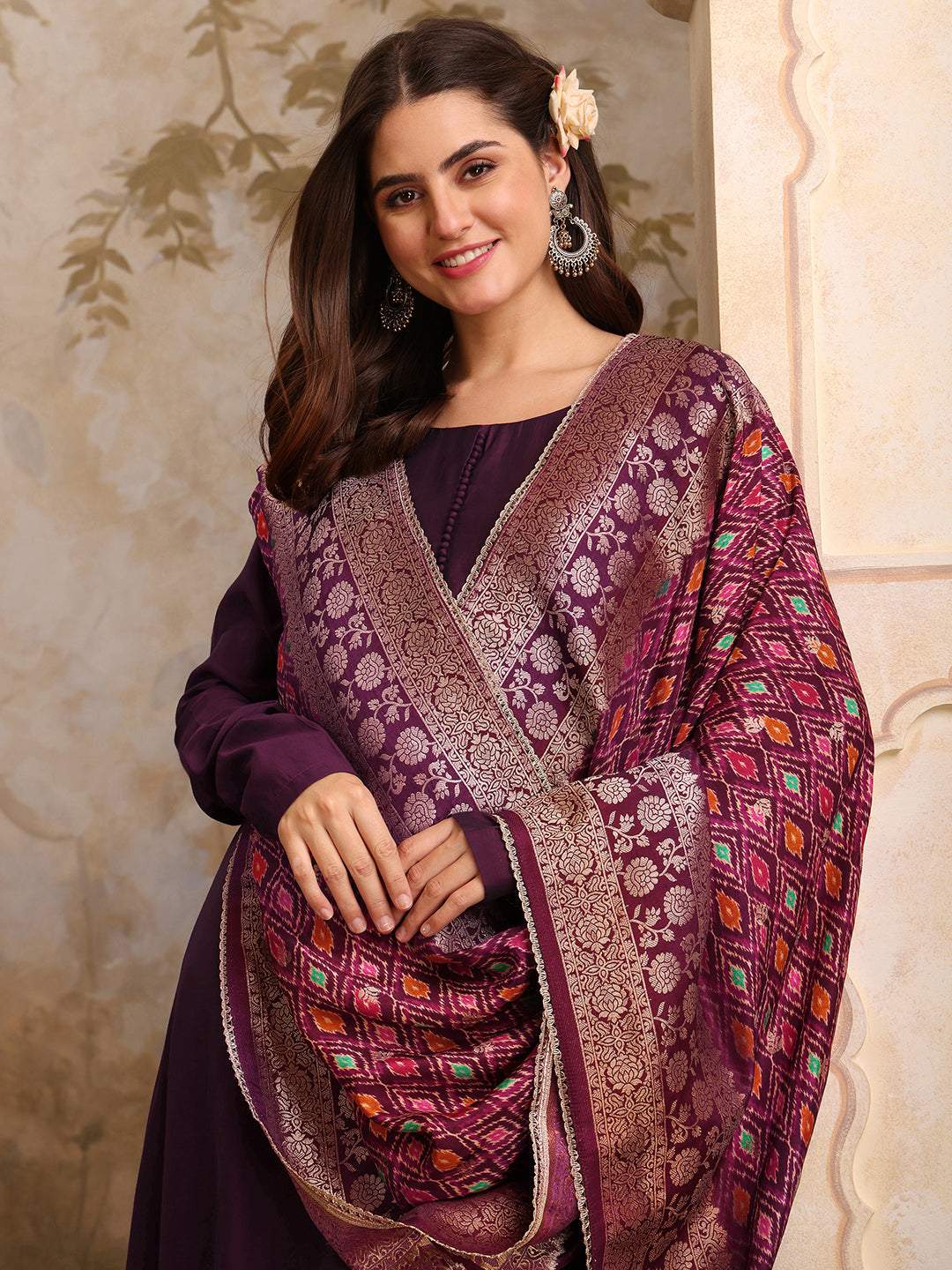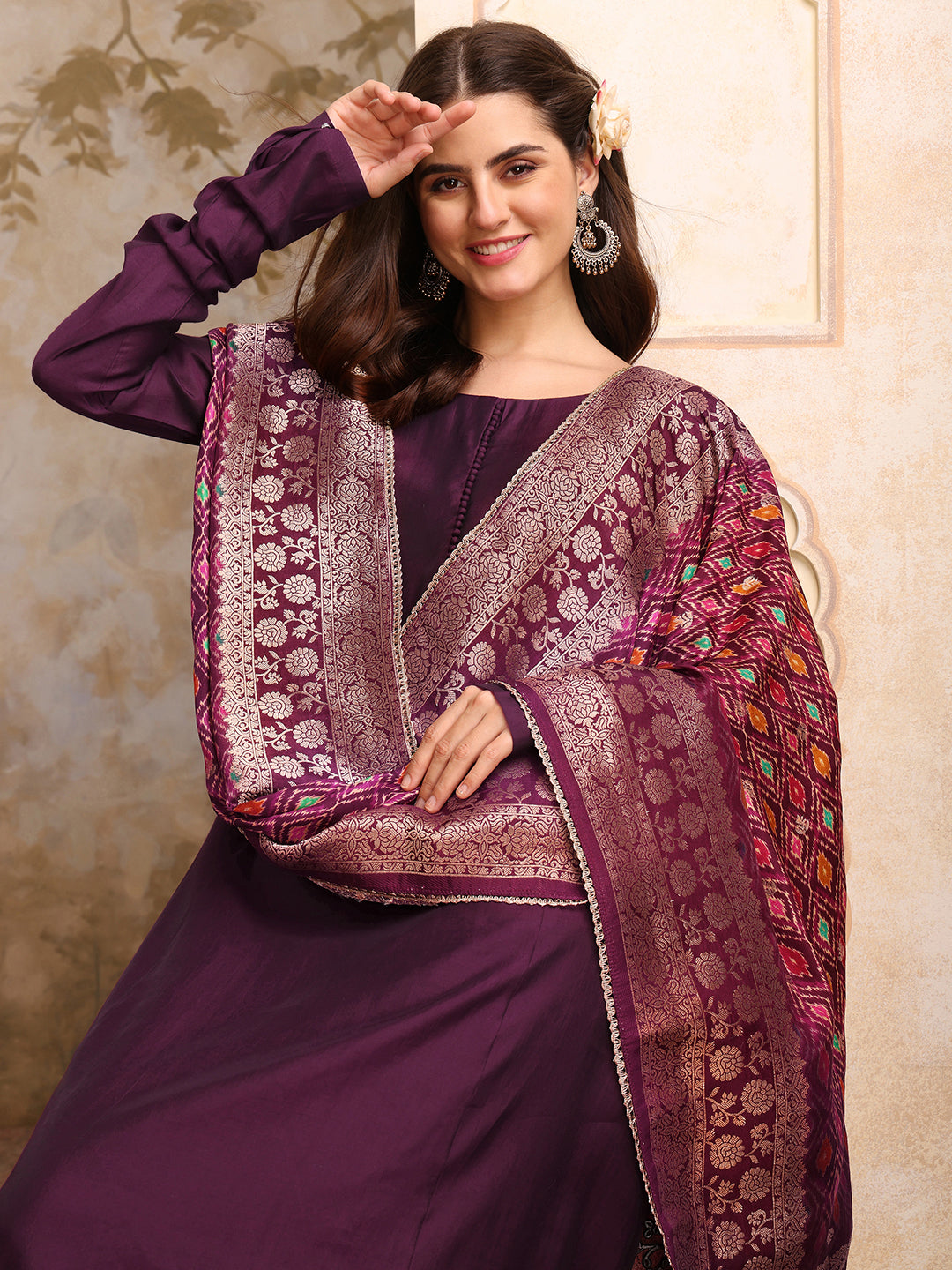 Burgundy, red and gold toned solid kurta with trousers and dupatta
