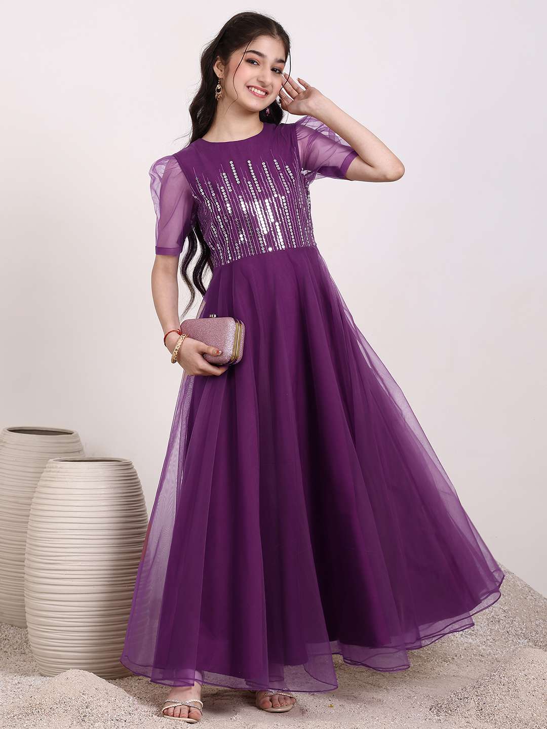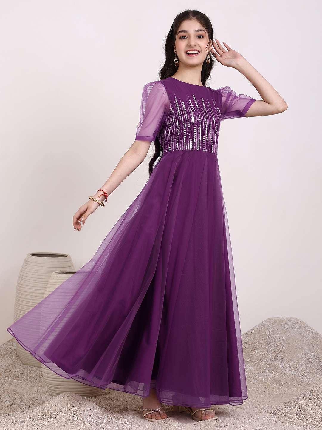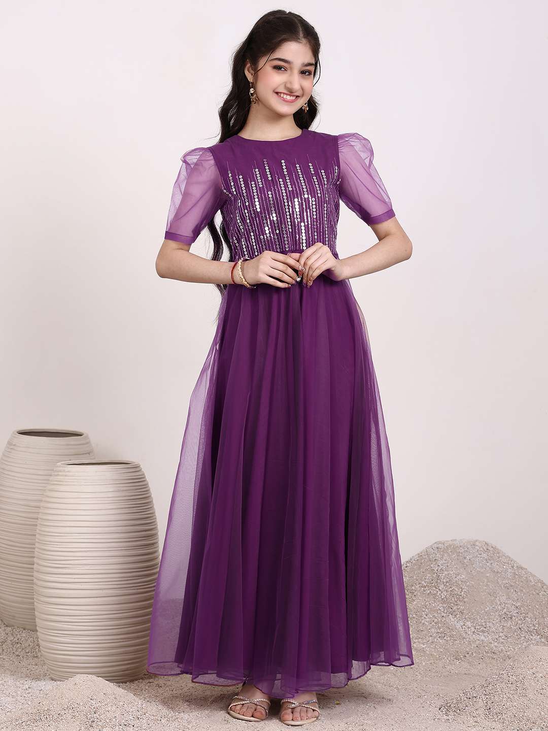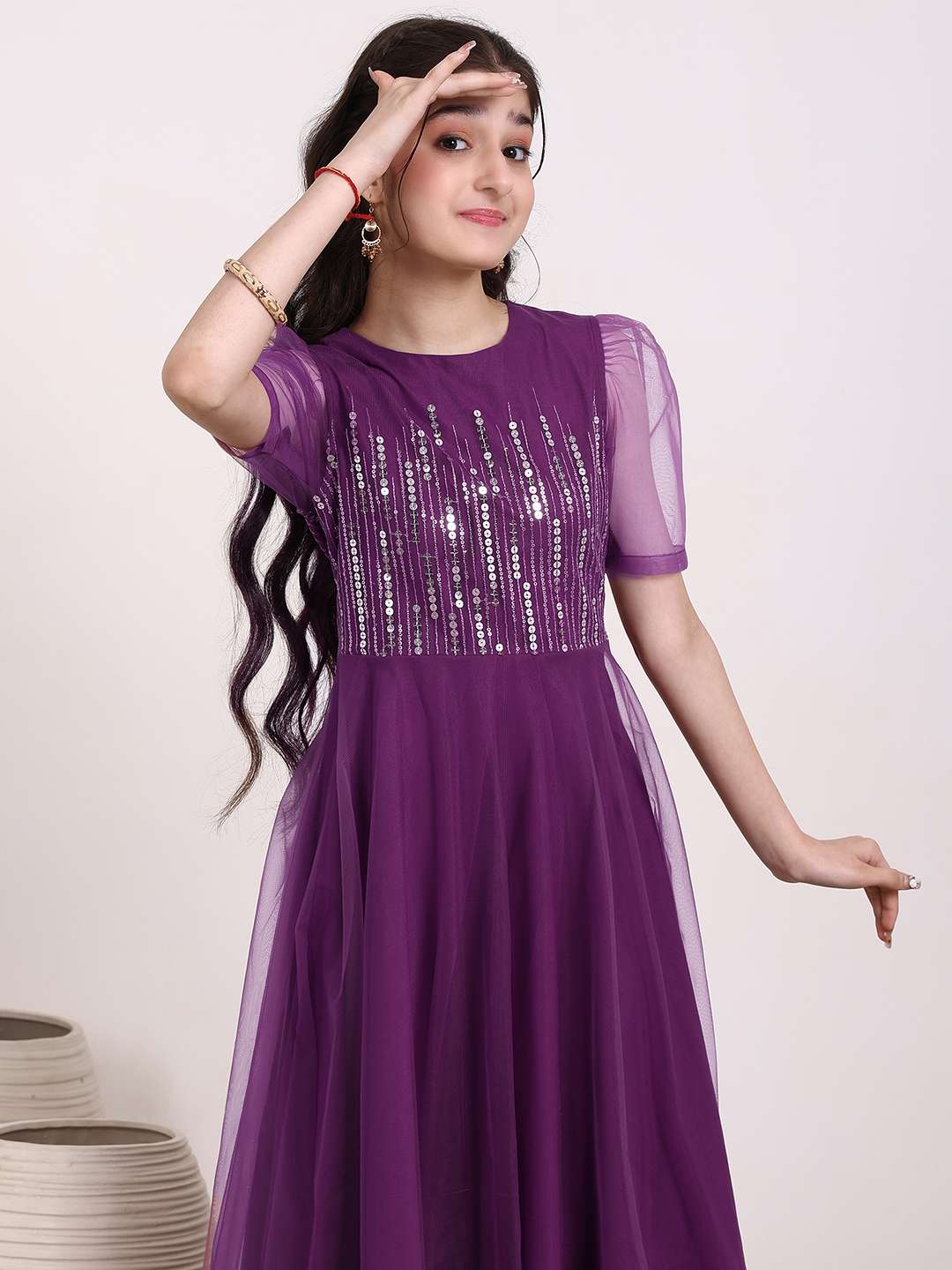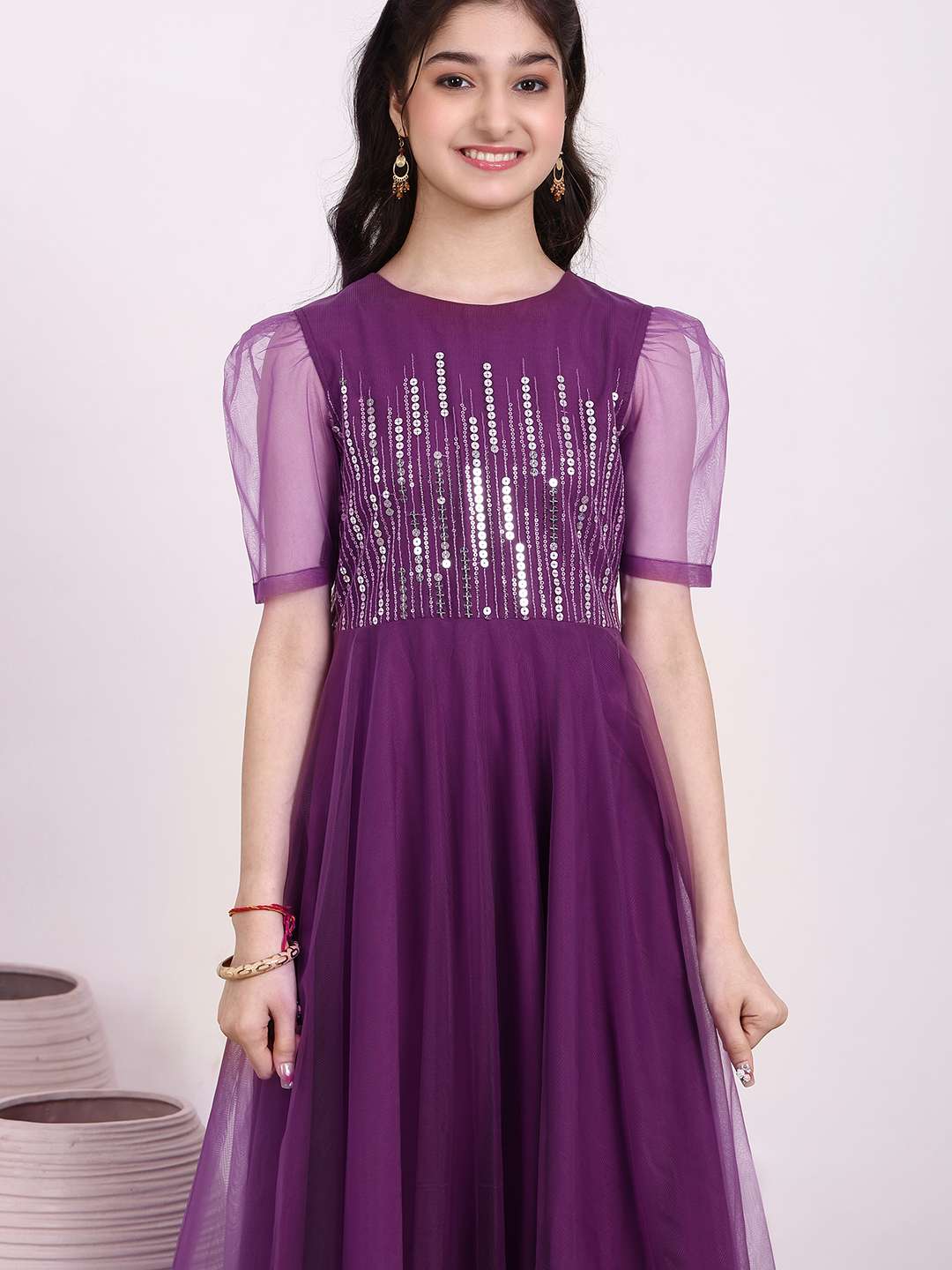 Purple embroidered ethnic Dress
