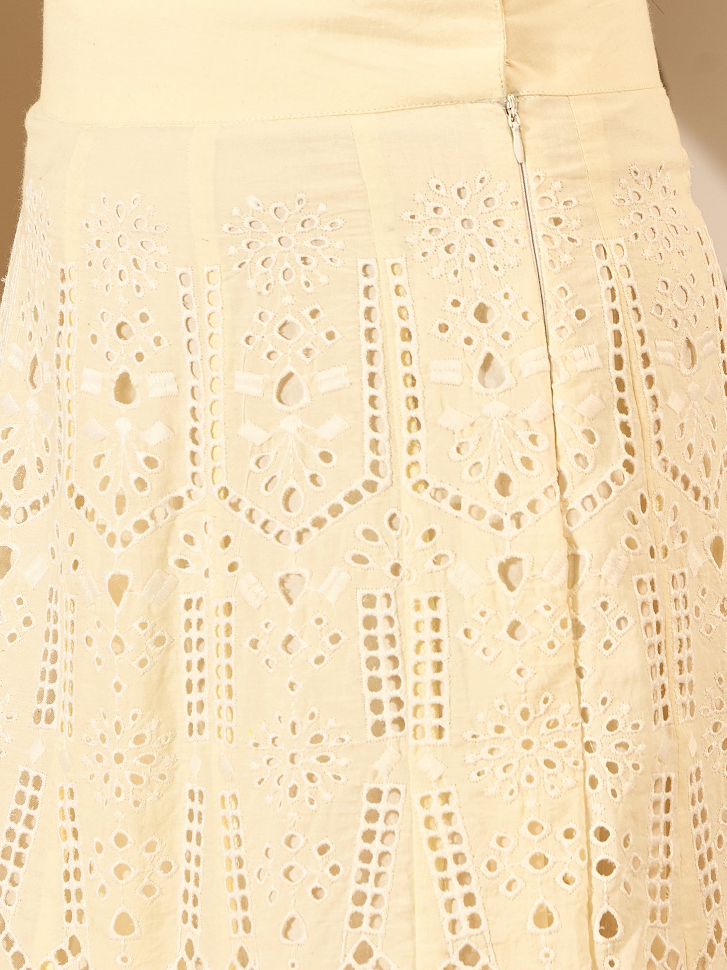 Off white embroidered skirts, has an elasticated waistband with slip on closure