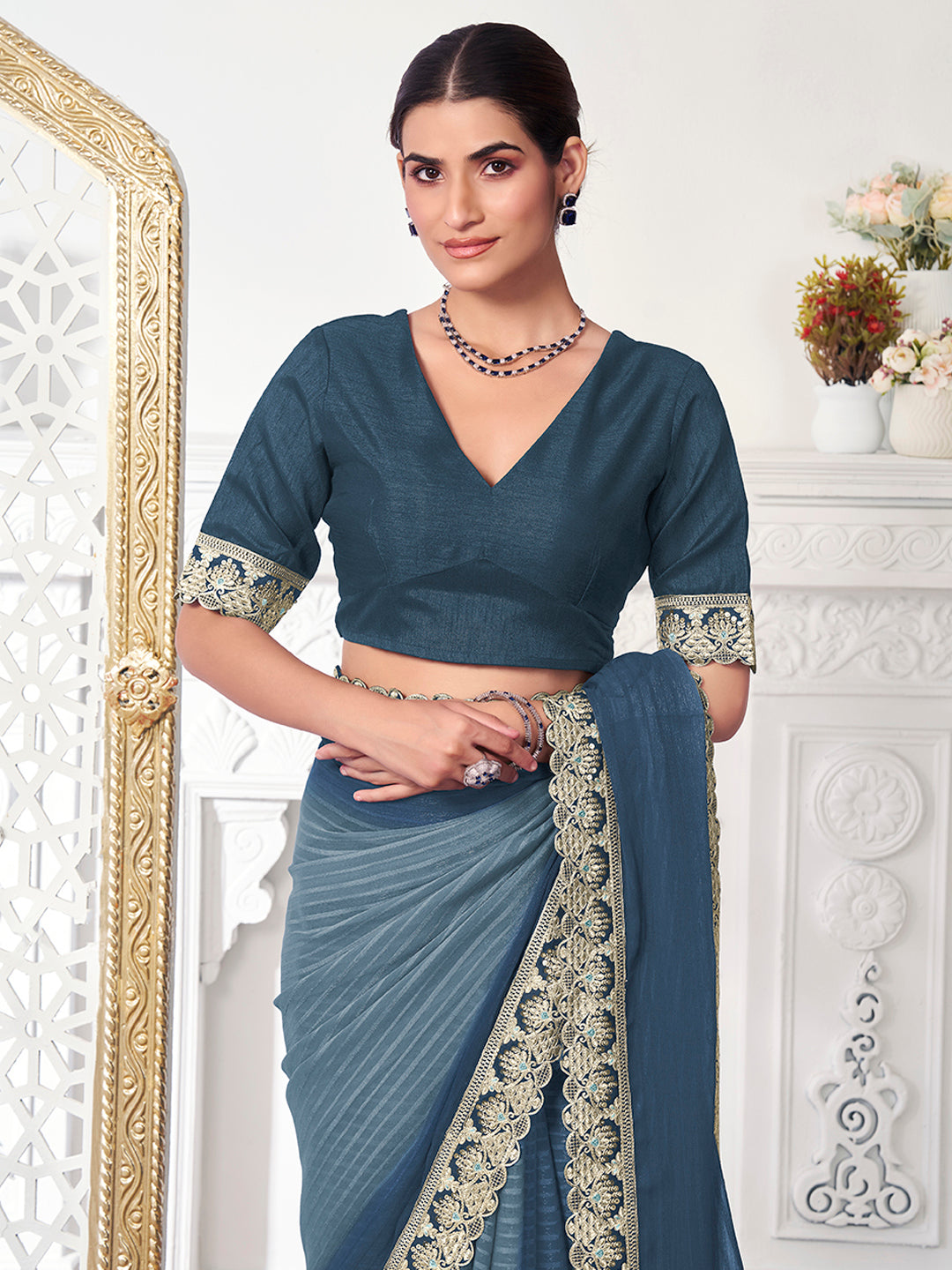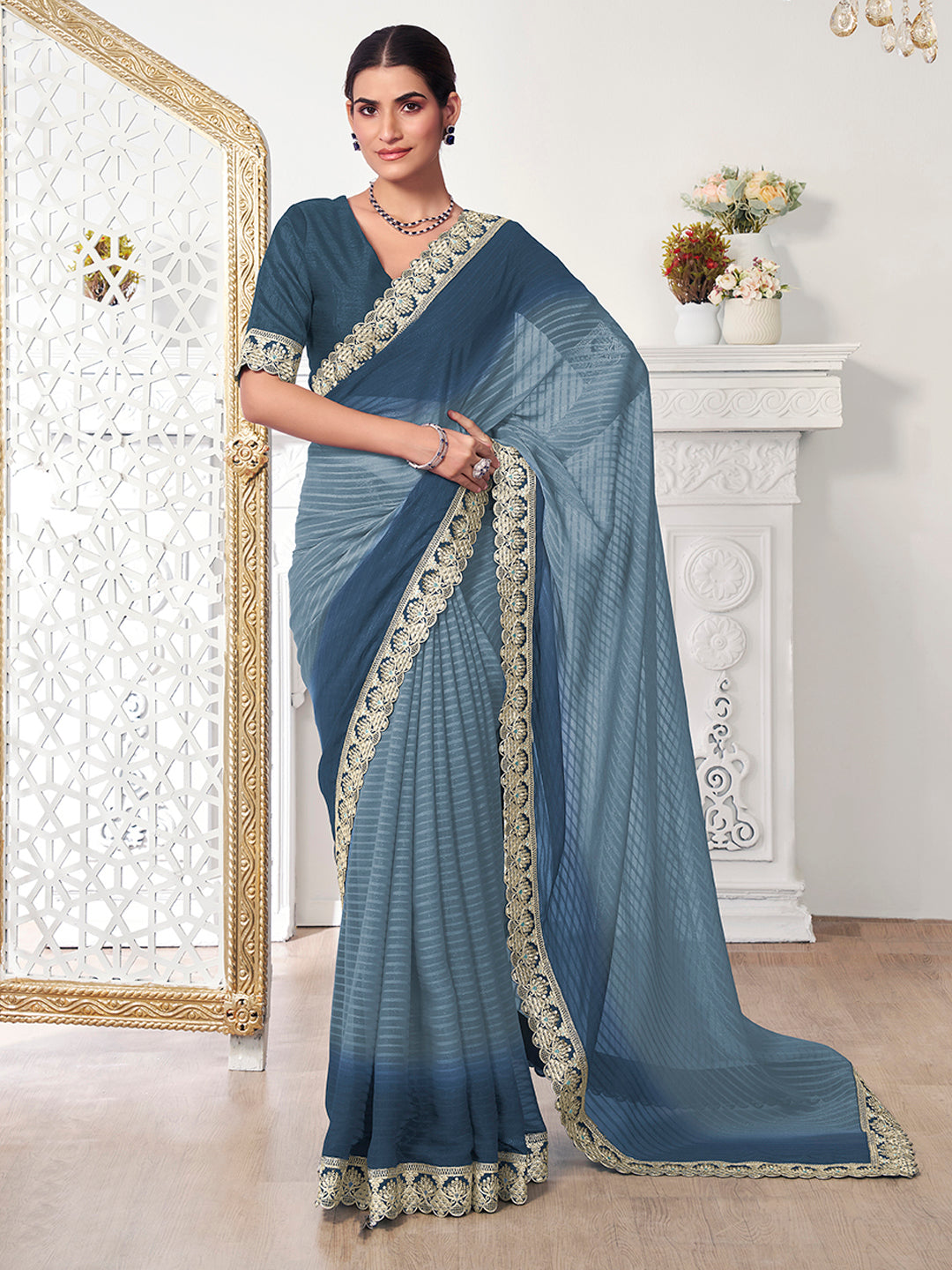 Saree Fabric: Chiffon & Blouse Fabric: Silk Blend