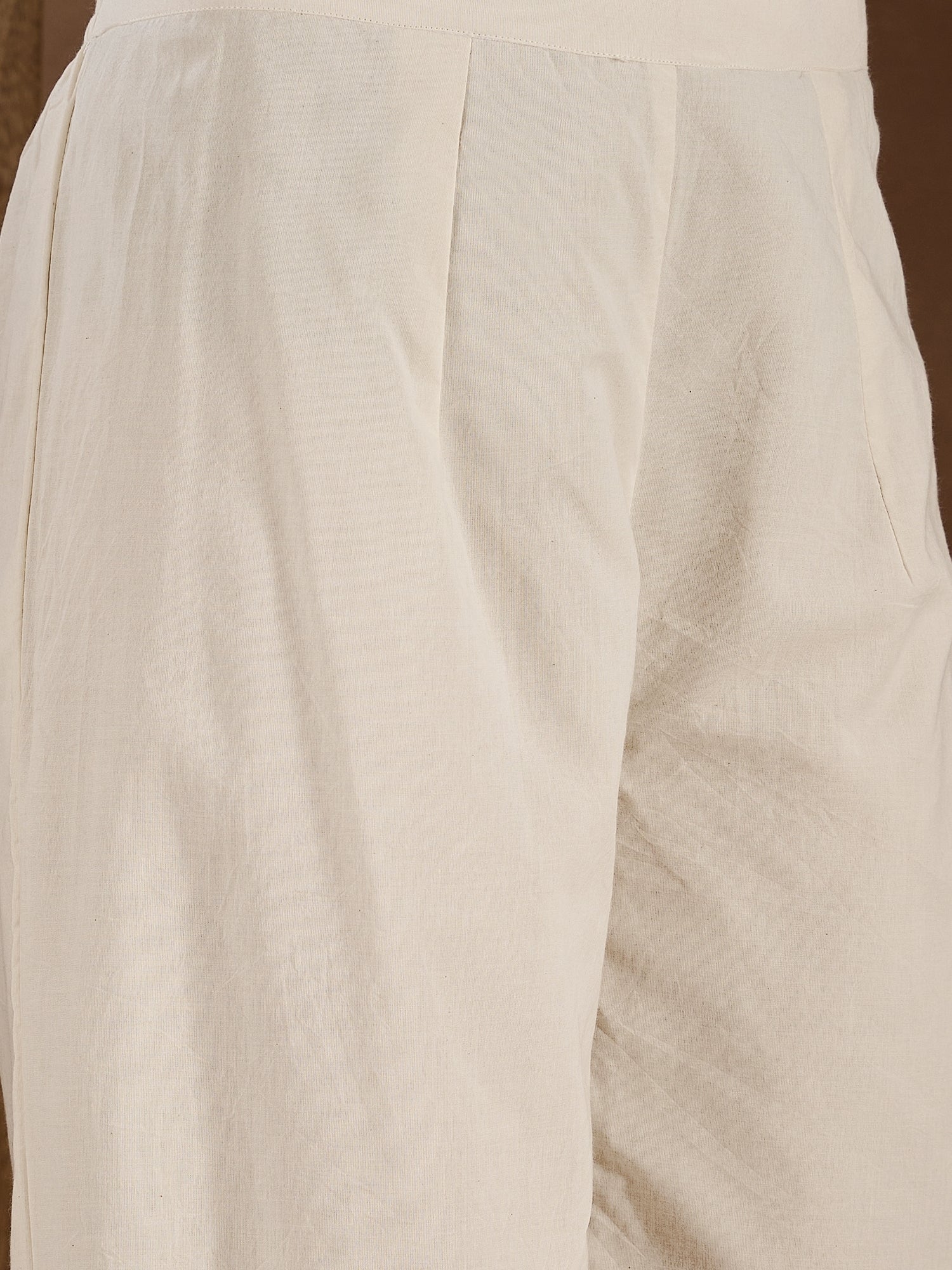Off white solid mid-rise trousers, has elasticated waistband with slip-on closure and 2 side pockets