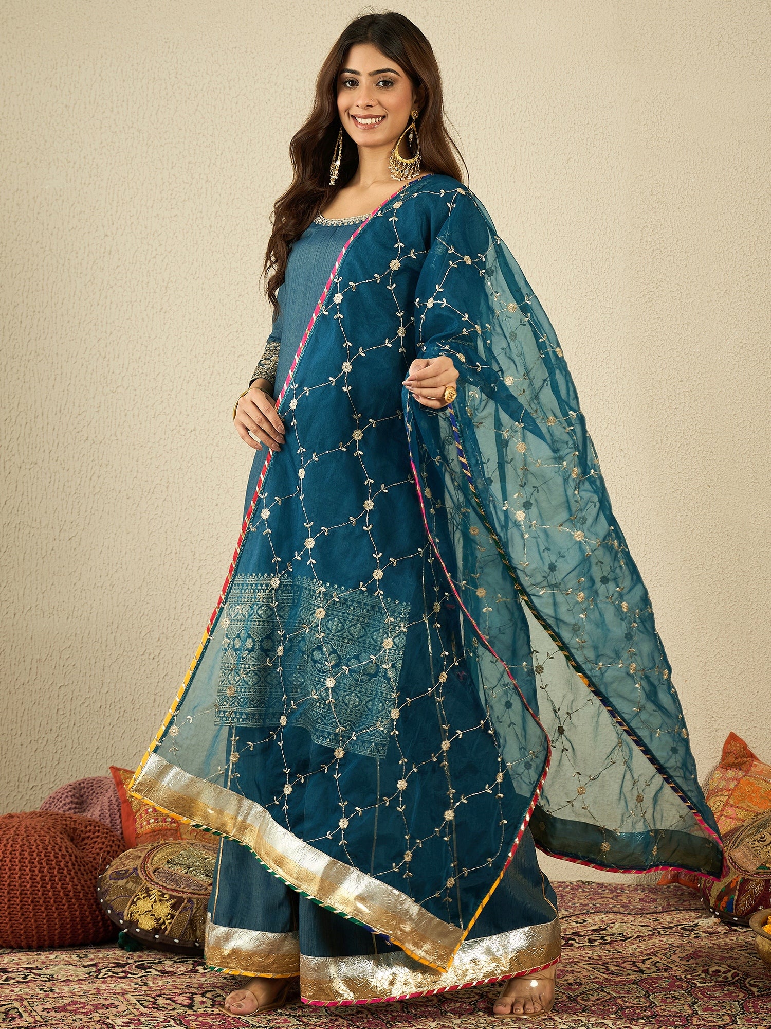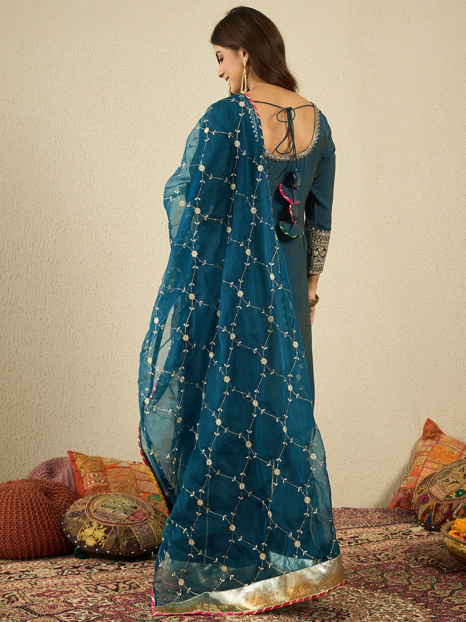 Ethnic Motifs - Embroidered - Teal Kurta