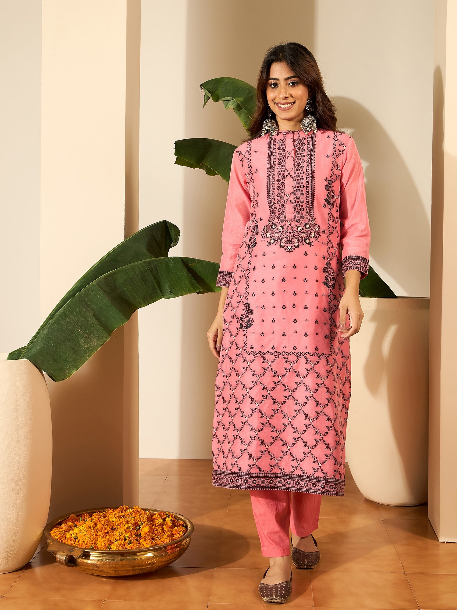 Ethnic Motifs - Embroidered - Pink Kurta