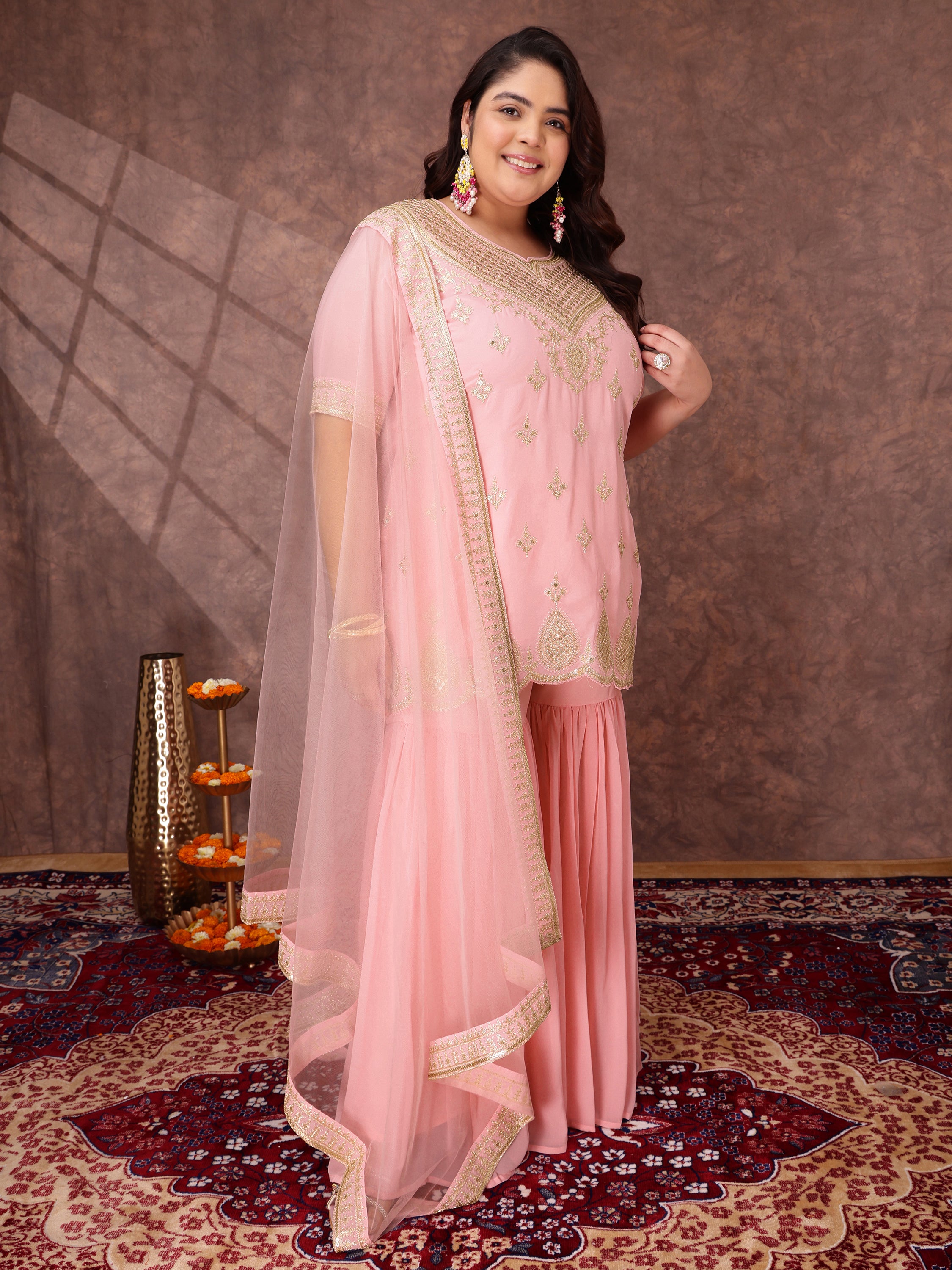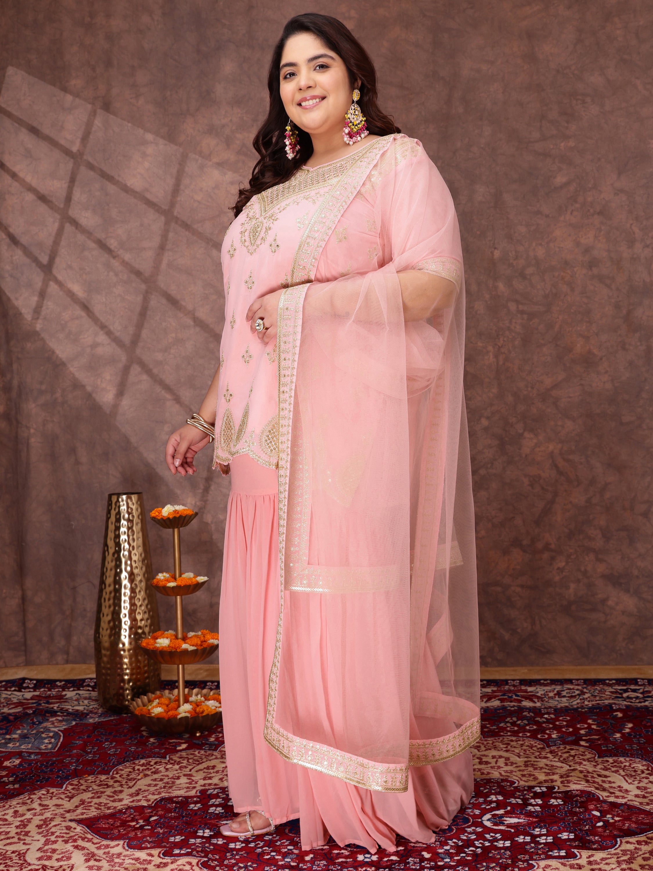 TOP: Georgette, TOP INNER: Crepe, BOTTOM: Georgette with Crepe Inner, DUPATTA: Net, Dry Clean