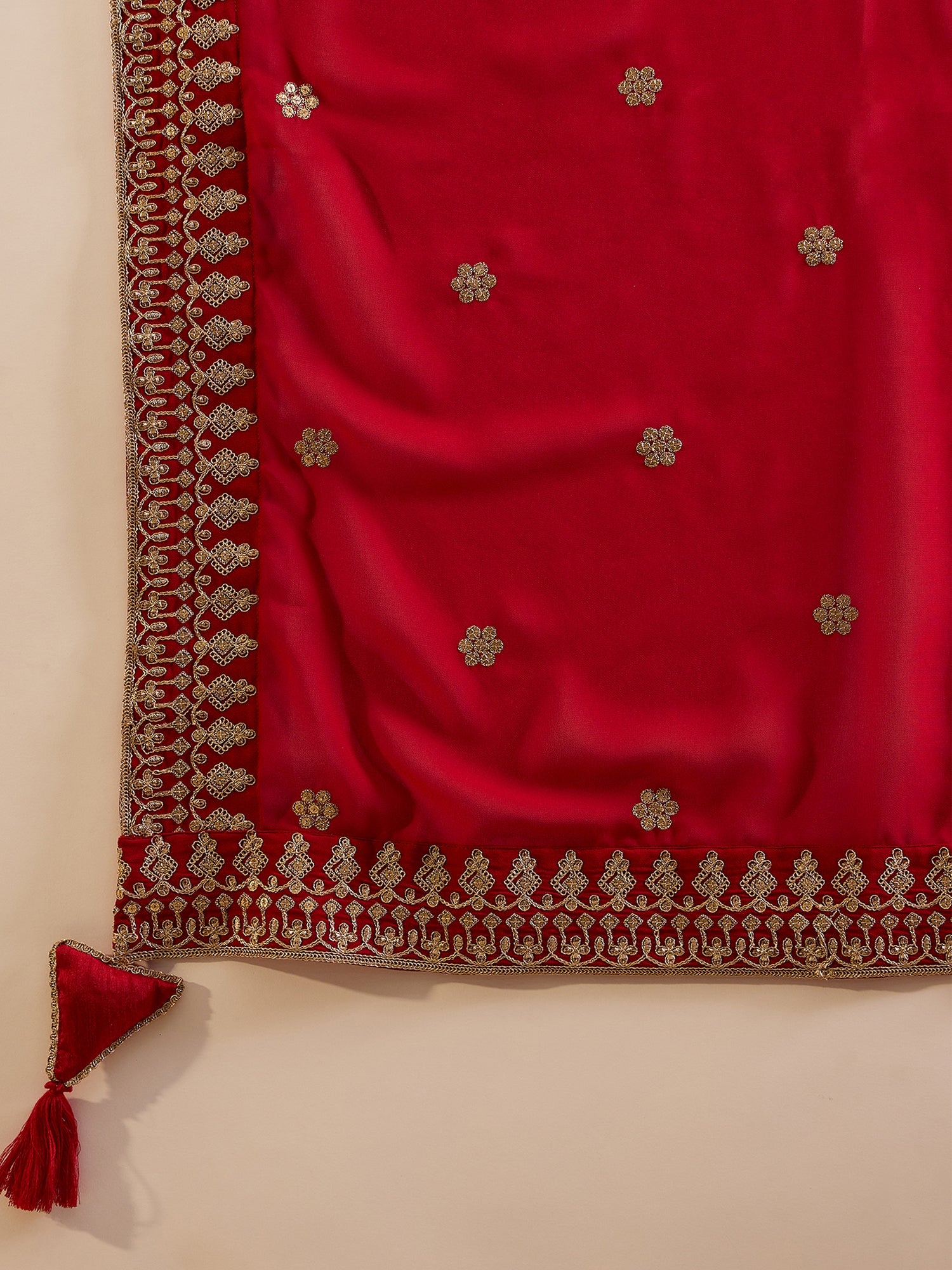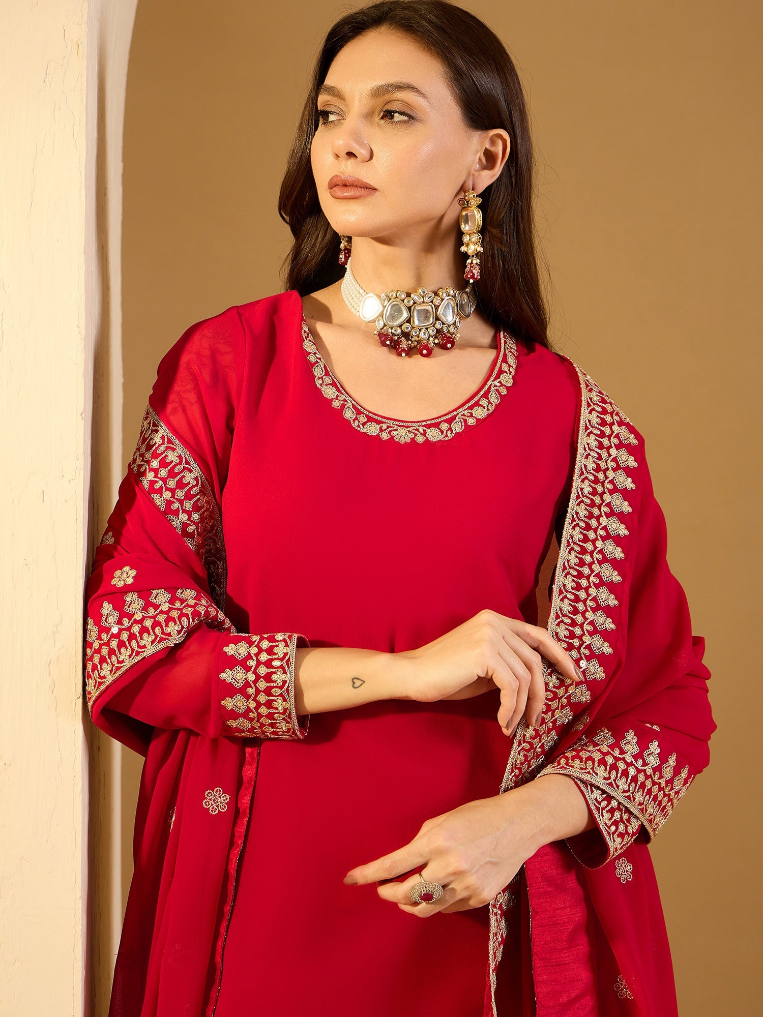 Red embroidered Kurta with Palazzos with dupatta