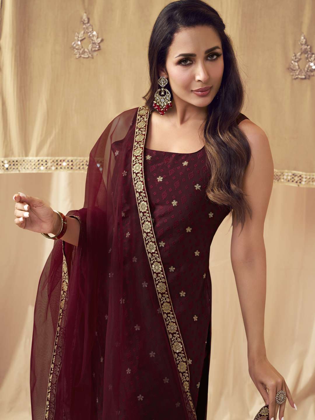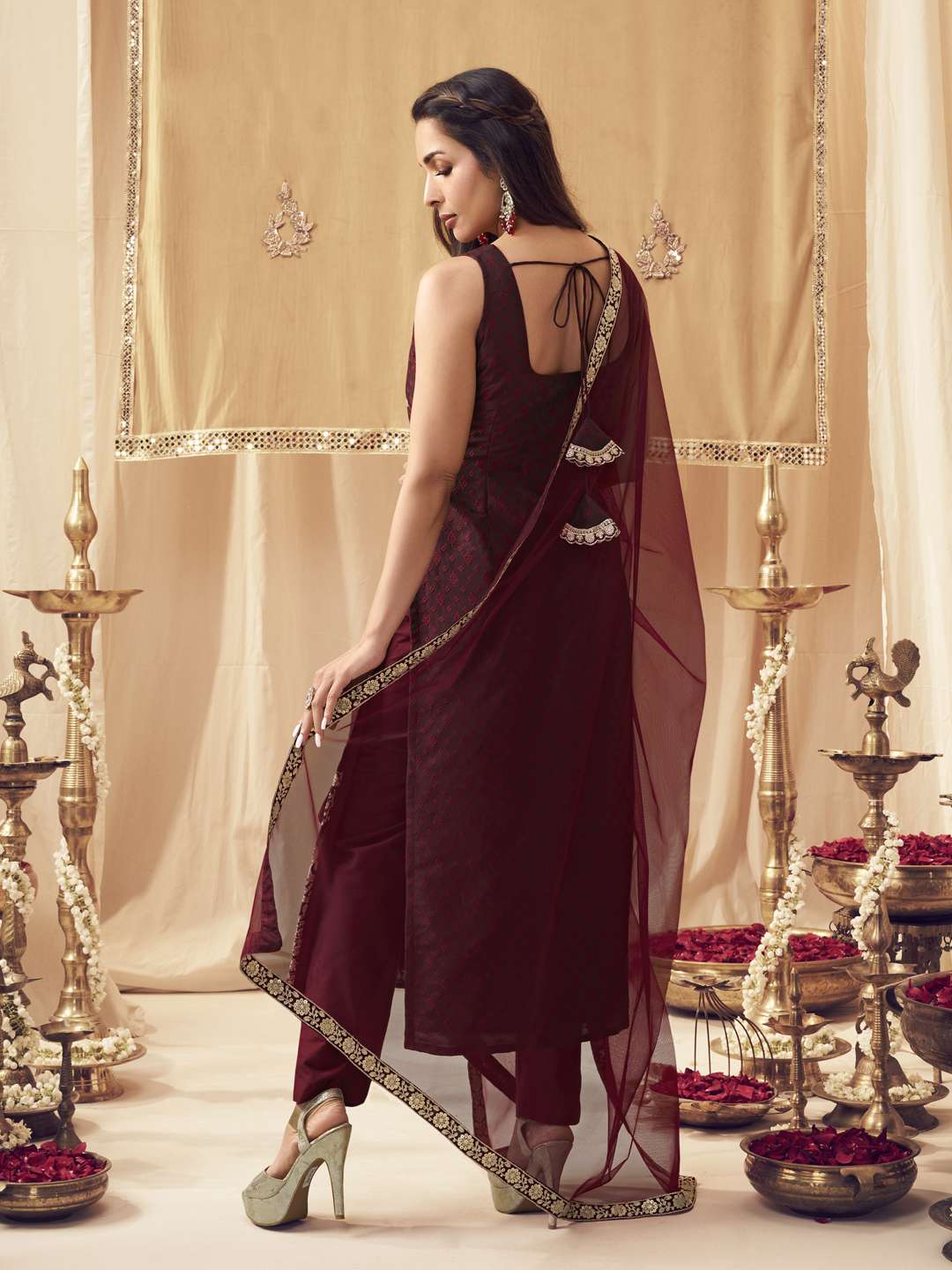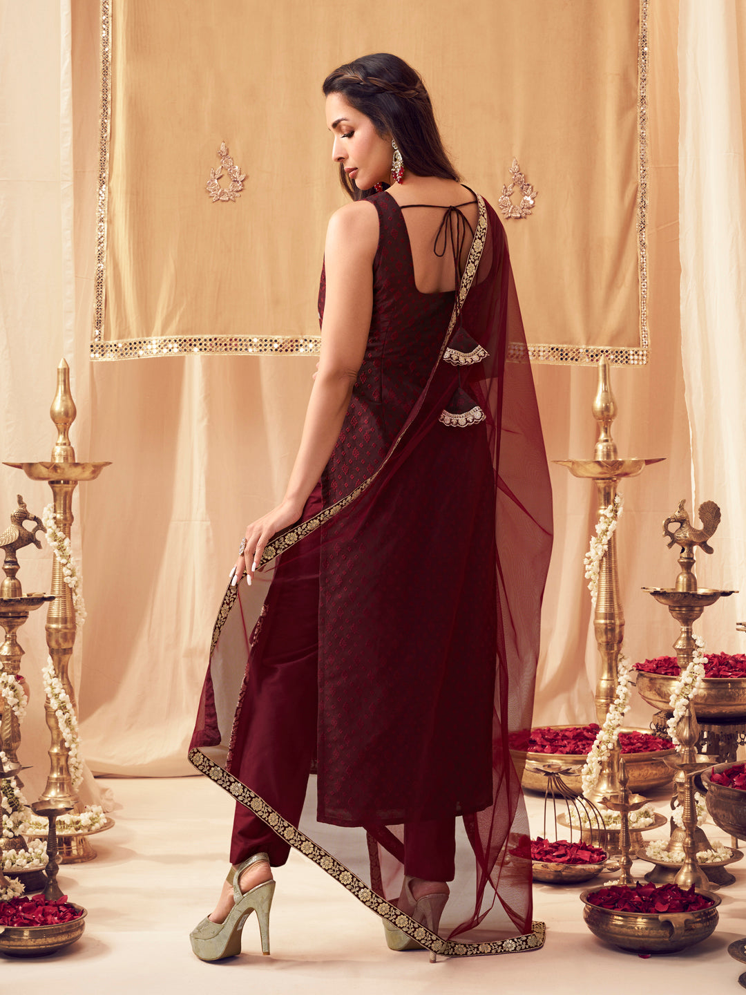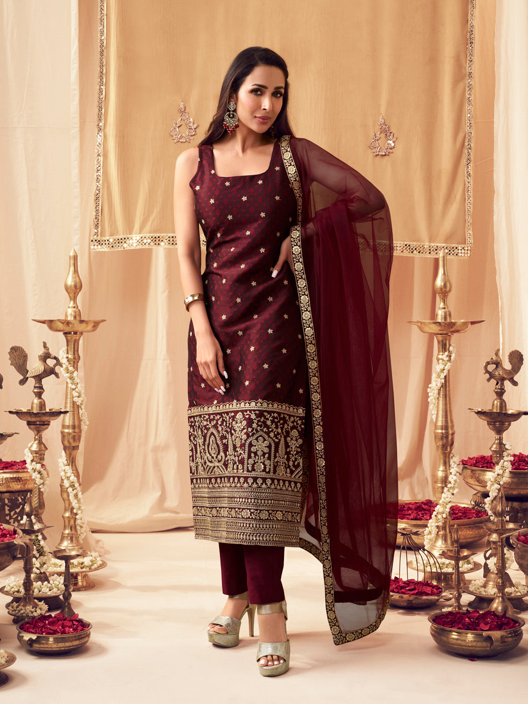 Step out in style with our Maroon Ethnic Motifs Embroidered Kurta set. The straight shape and regular style make it perfect for any occasion, while the zari detail adds an elegant touch. The silk blend fabric ensures a comfortable fit, while the trousers provide a slip-on closure for easy wear. Complete the look with the Trousers and Dupatta for a stylish and sophisticated ensemble.