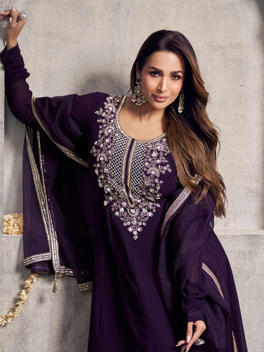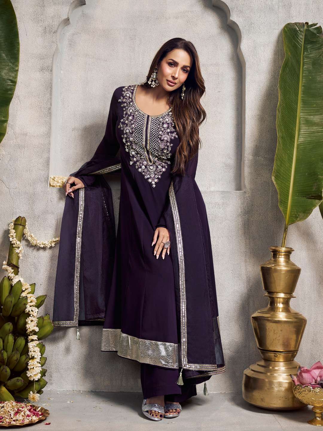 Purple & Gold Printed Kurta with Palazzo & Dupatta