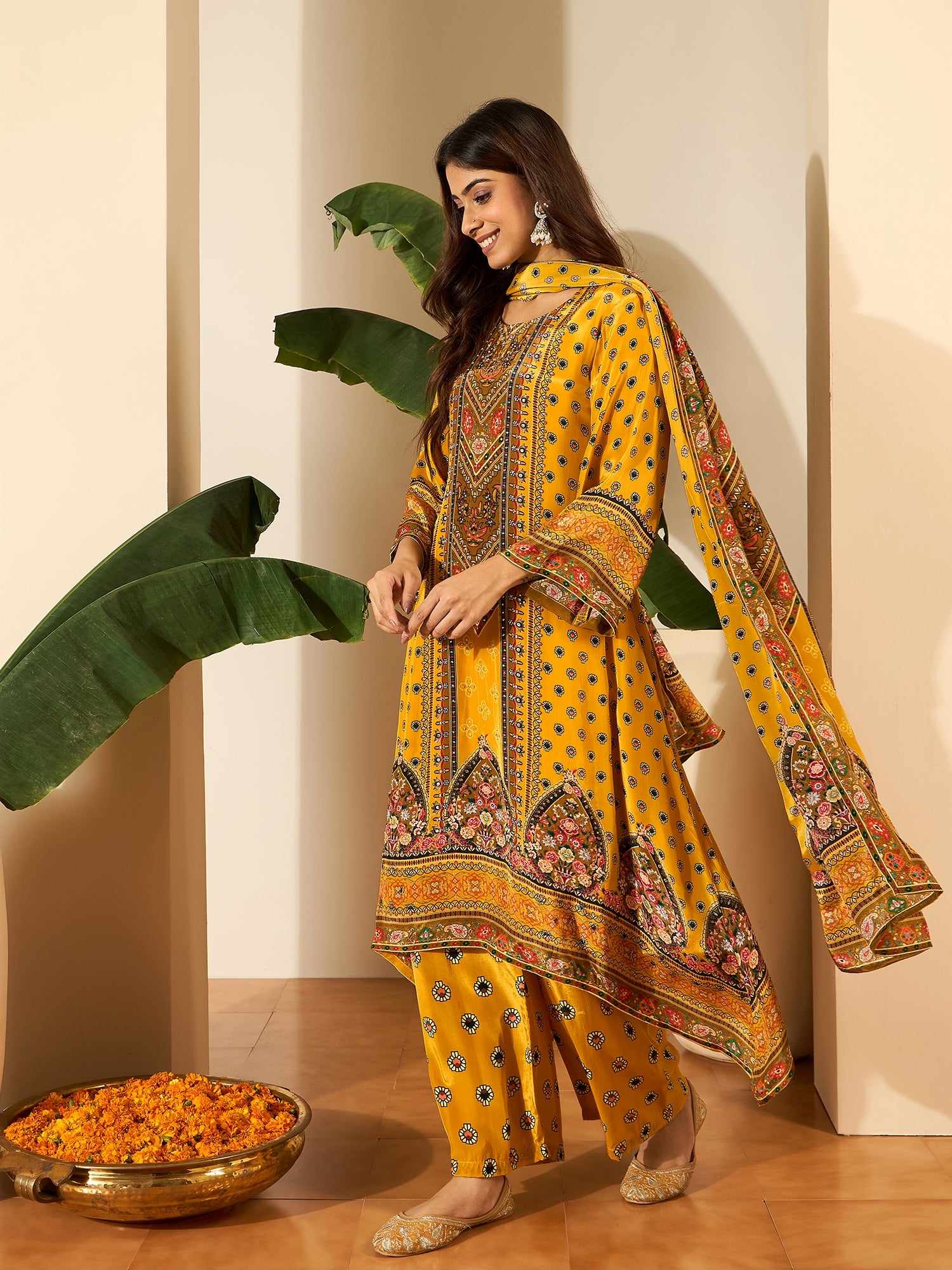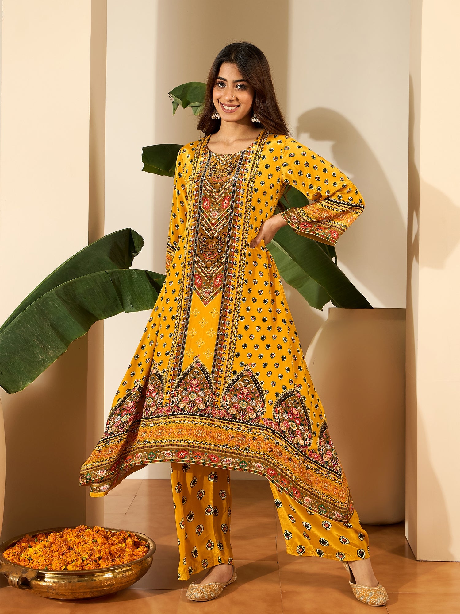 Yellow & Black Printed Kurta with Palazzos & Dupatta