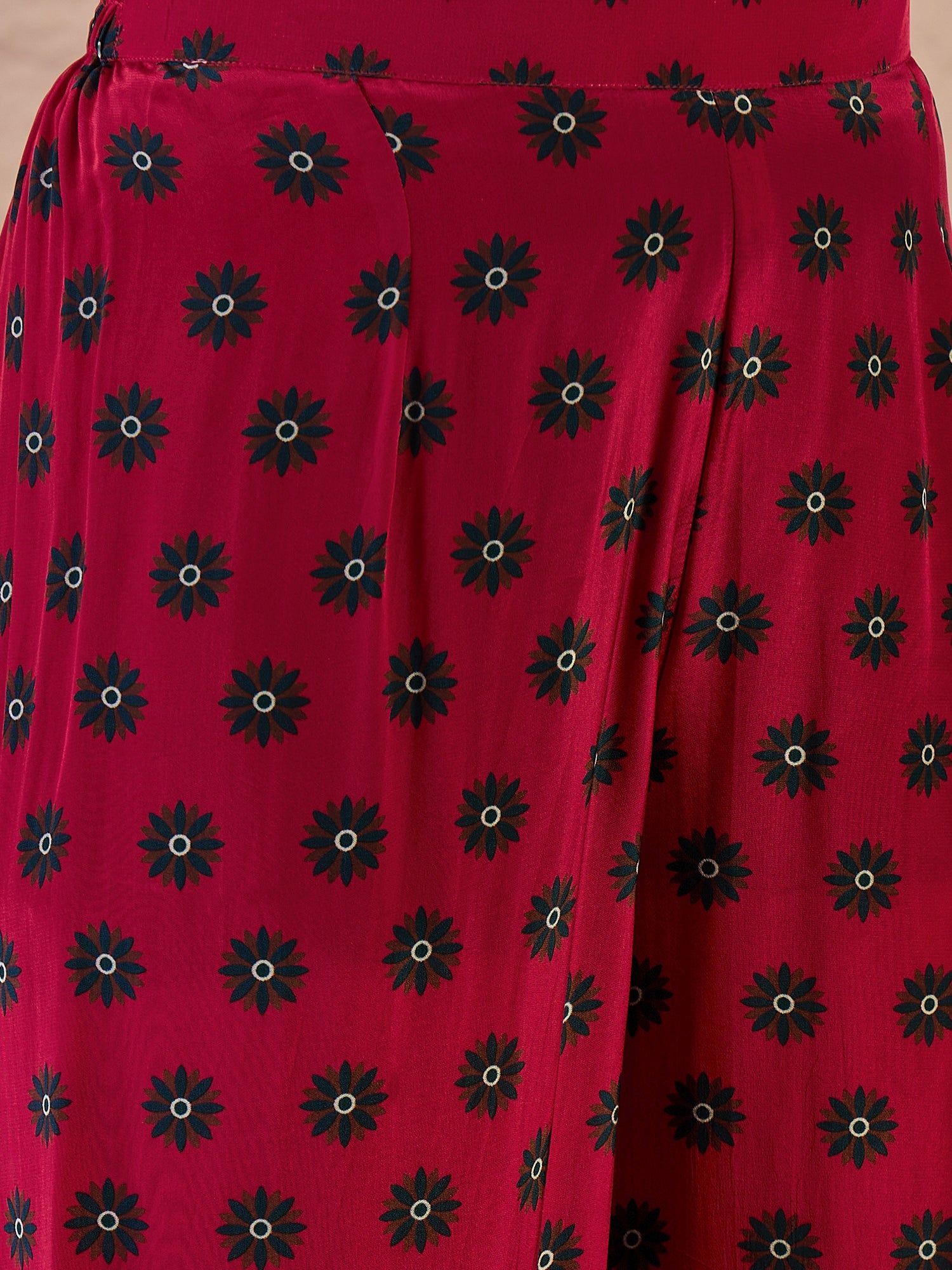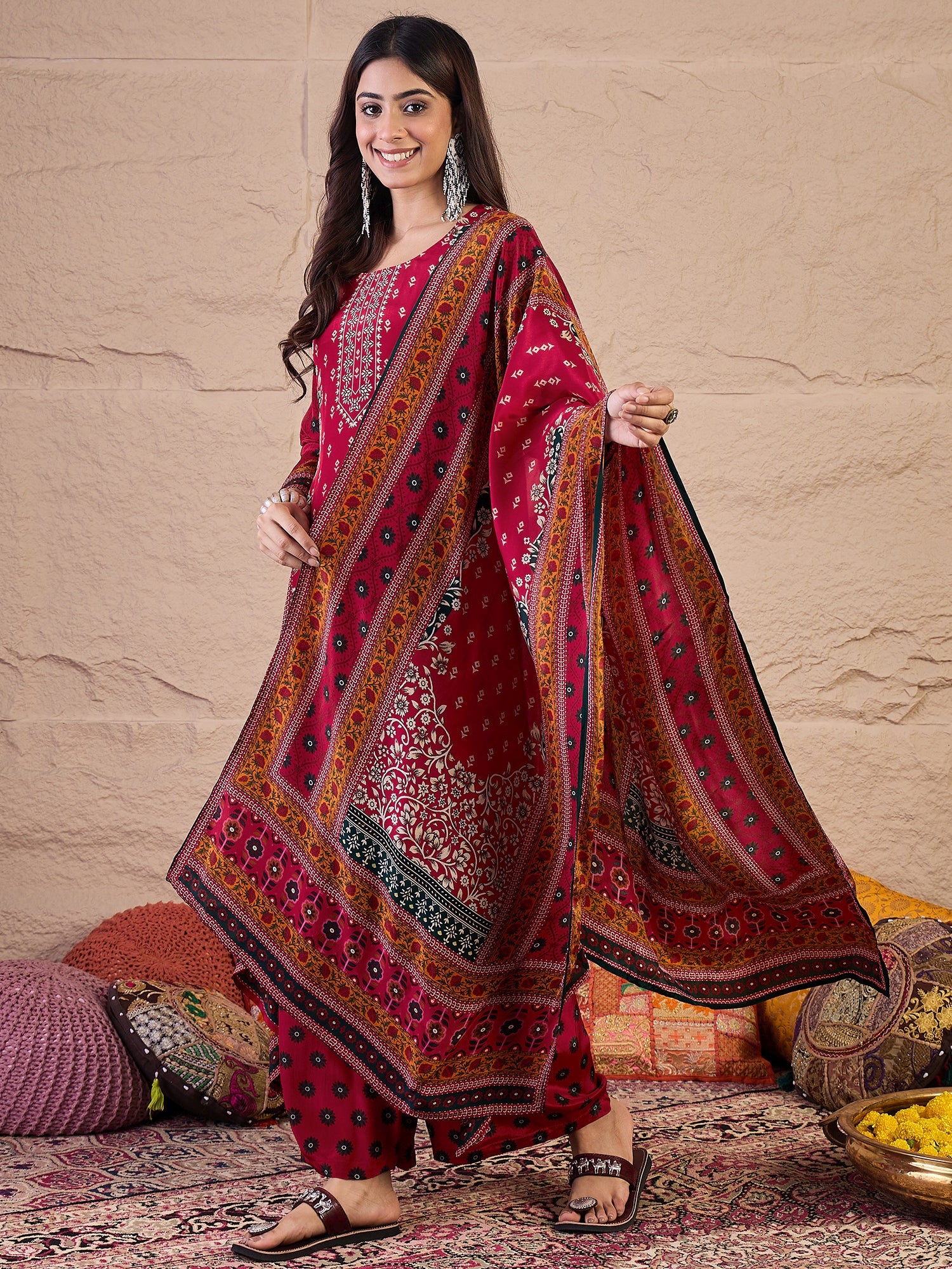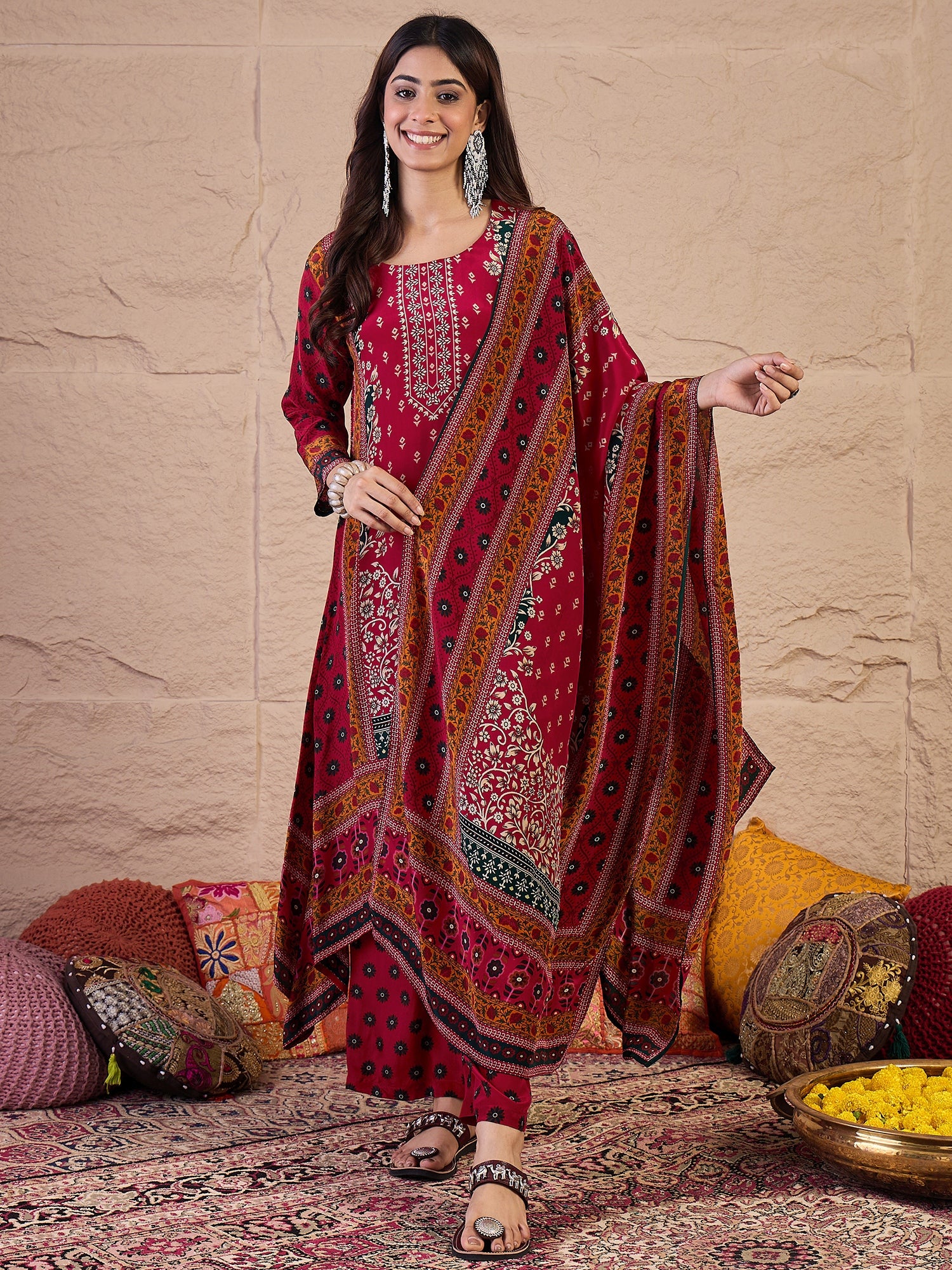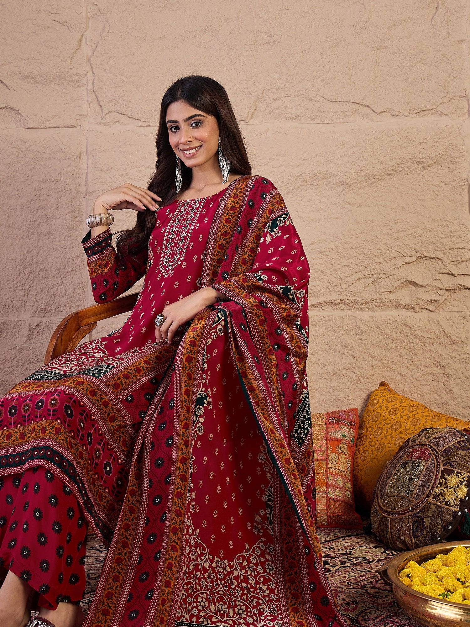 Red, Yellow, White Printed Kurta with Trousers & Dupatta