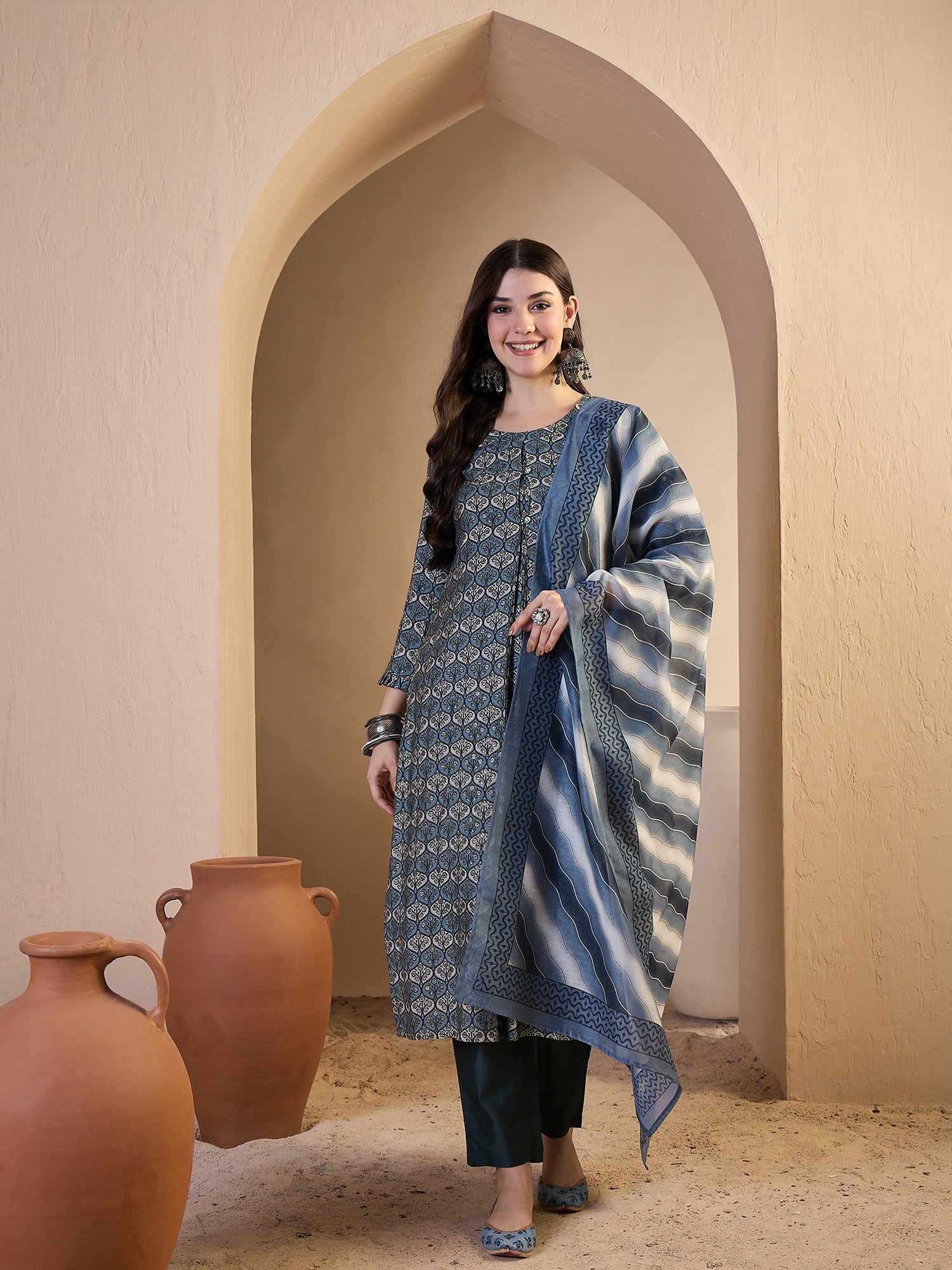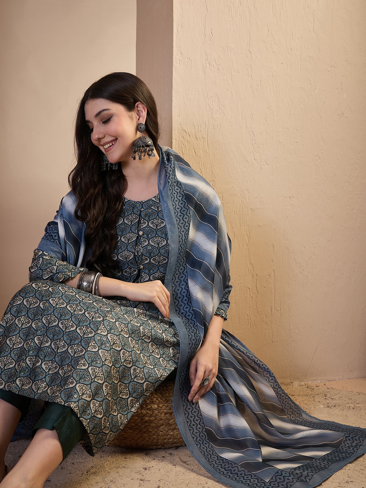 TOP: Chanderi Cotton, TOP INNER: Mul Cotton, BOTTOM: Cotton, DUPATTA: Mul Cotton, Dry Clean