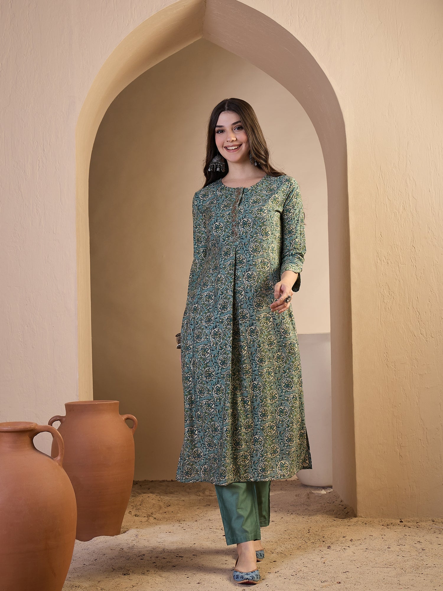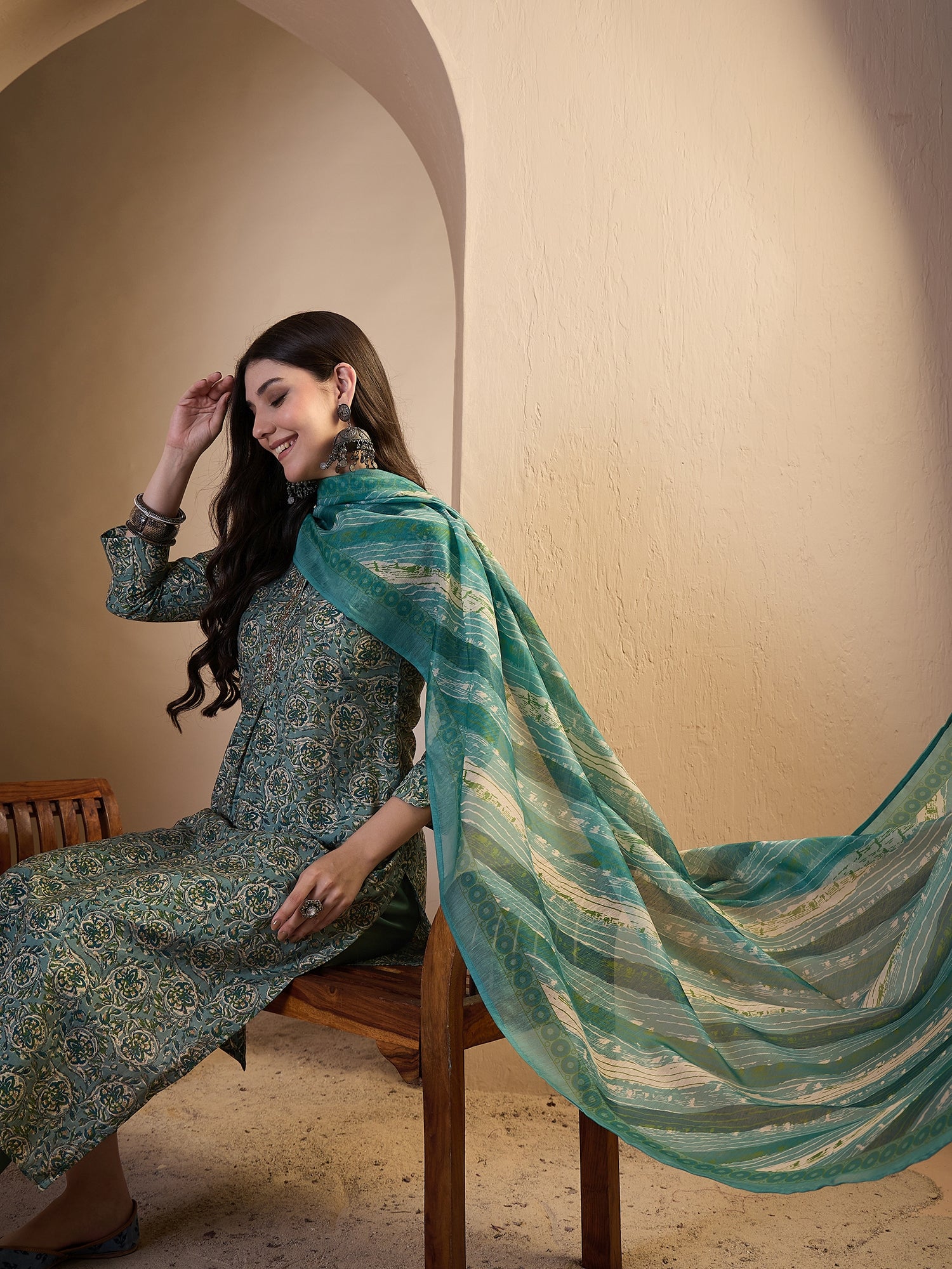 TOP: Chanderi Cotton, BOTTOM: Cotton, DUPATTA: Mul Cotton, Dry Clean