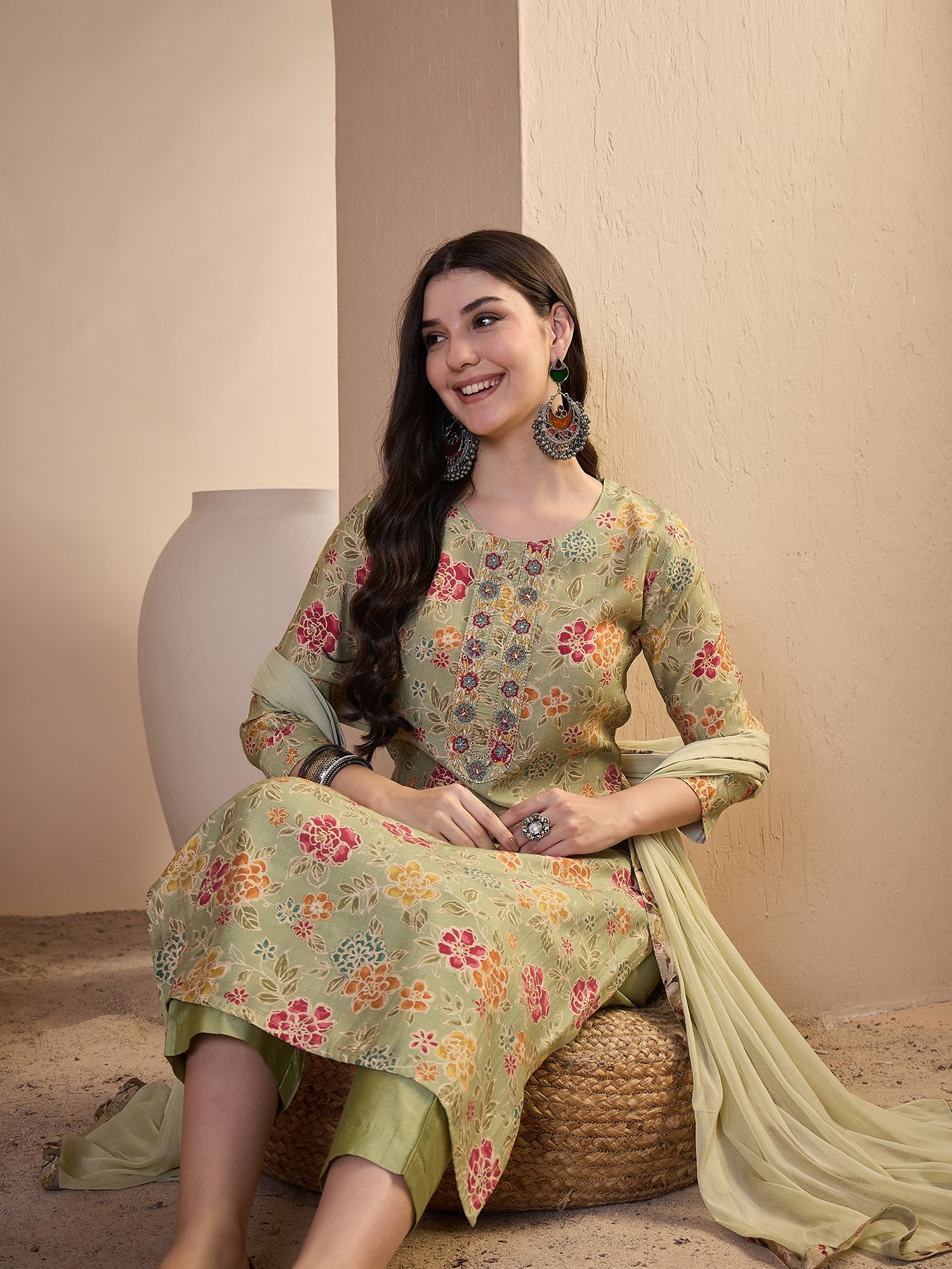 TOP: Chanderi Cotton, BOTTOM: Cotton, DUPATTA: Chiffon, Dry Clean