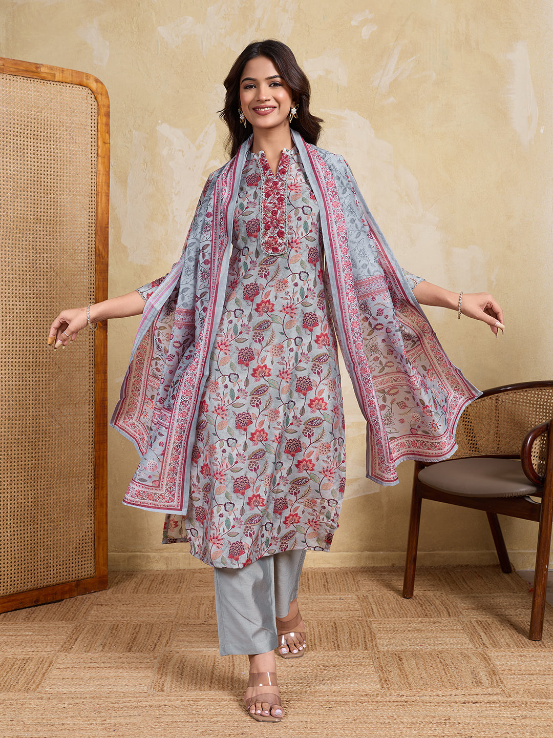 TOP: Chanderi Cotton, BOTTOM: Cotton, DUPATTA: Chanderi Cotton, Dry Clean