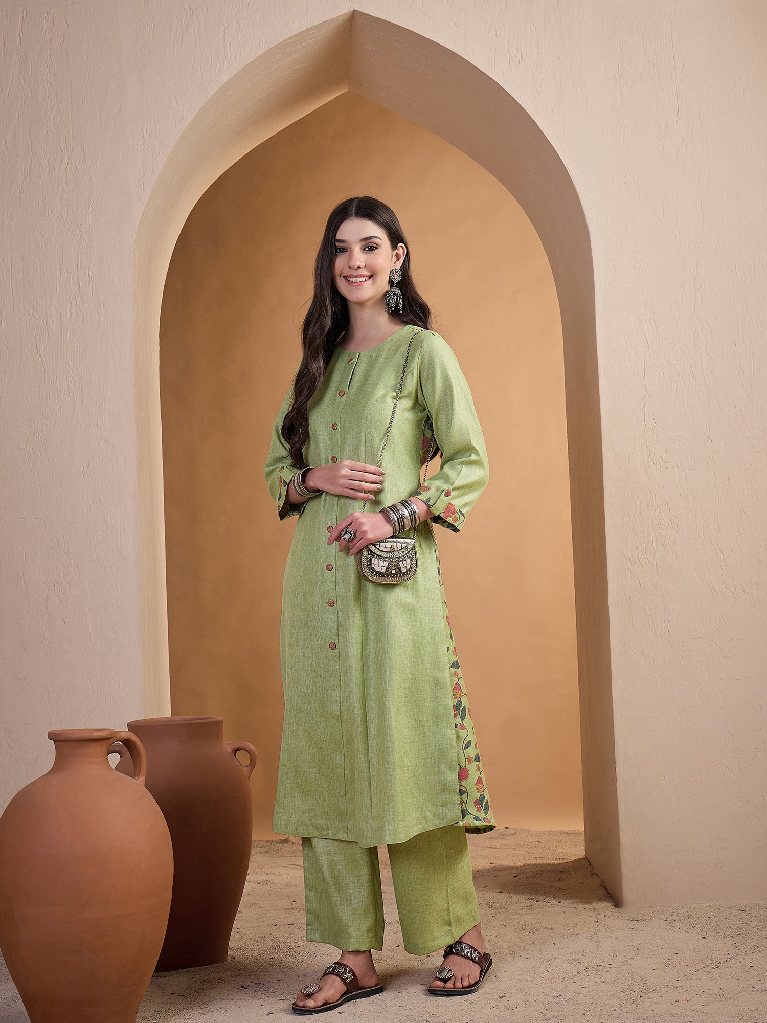 Lime green solid Kurta with Trousers