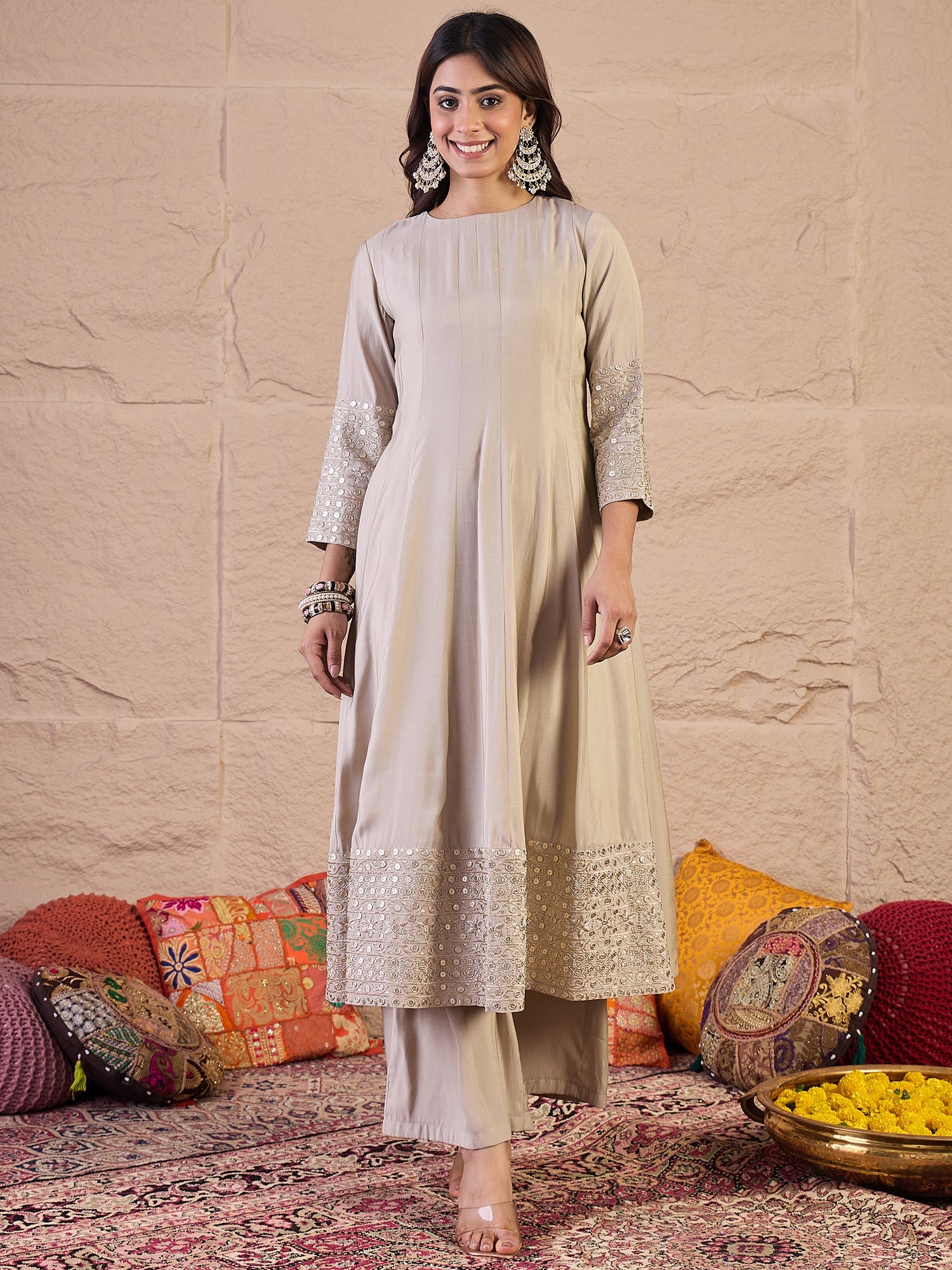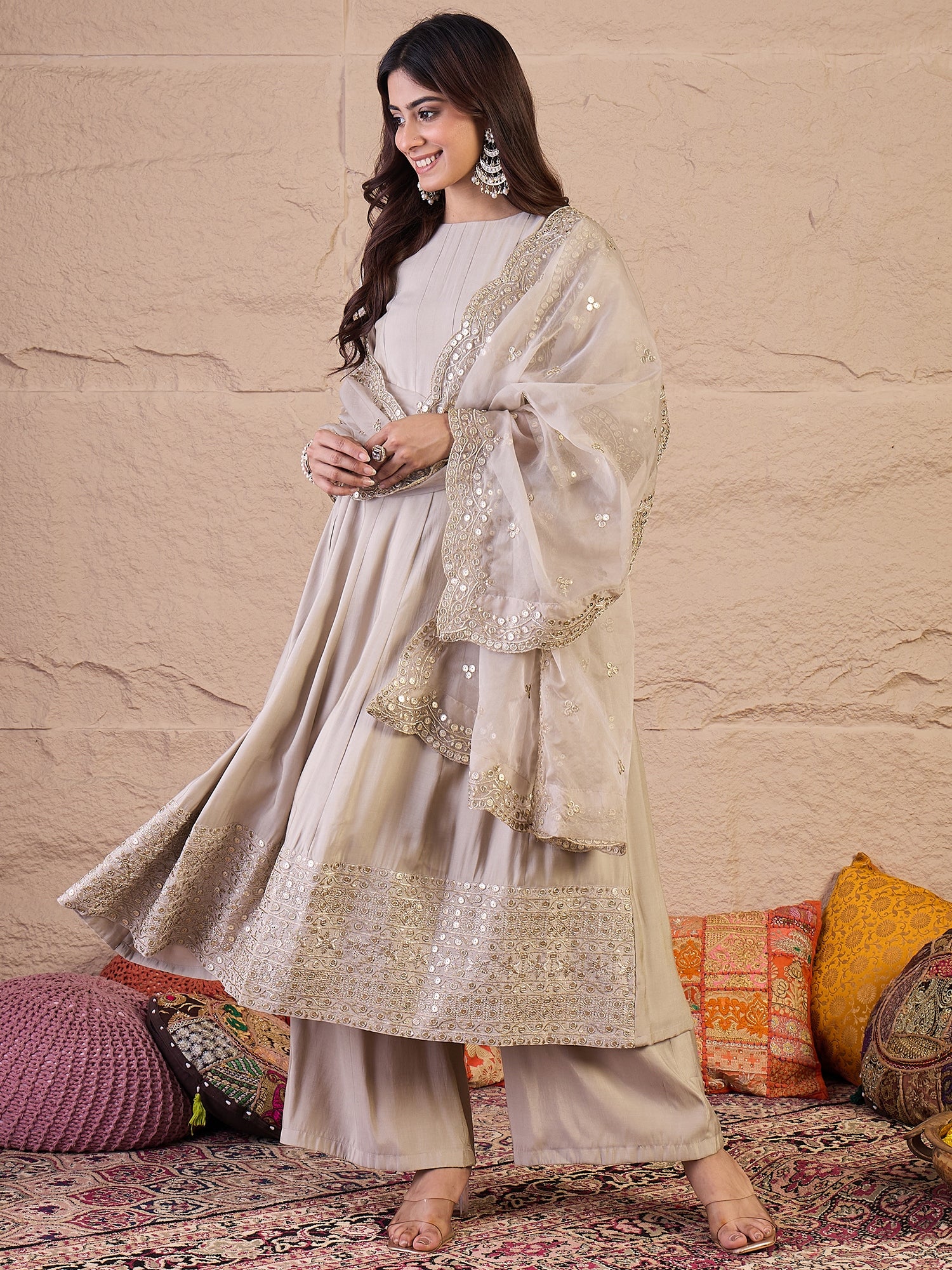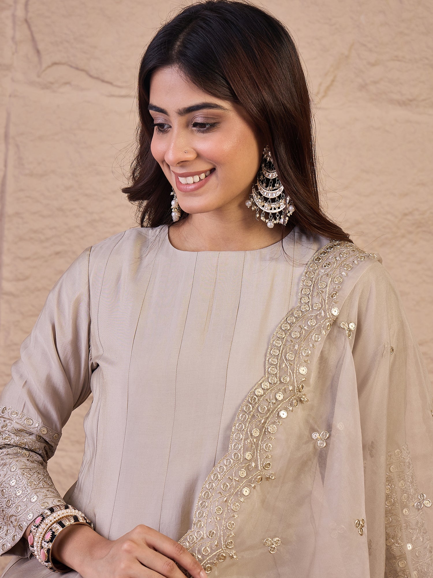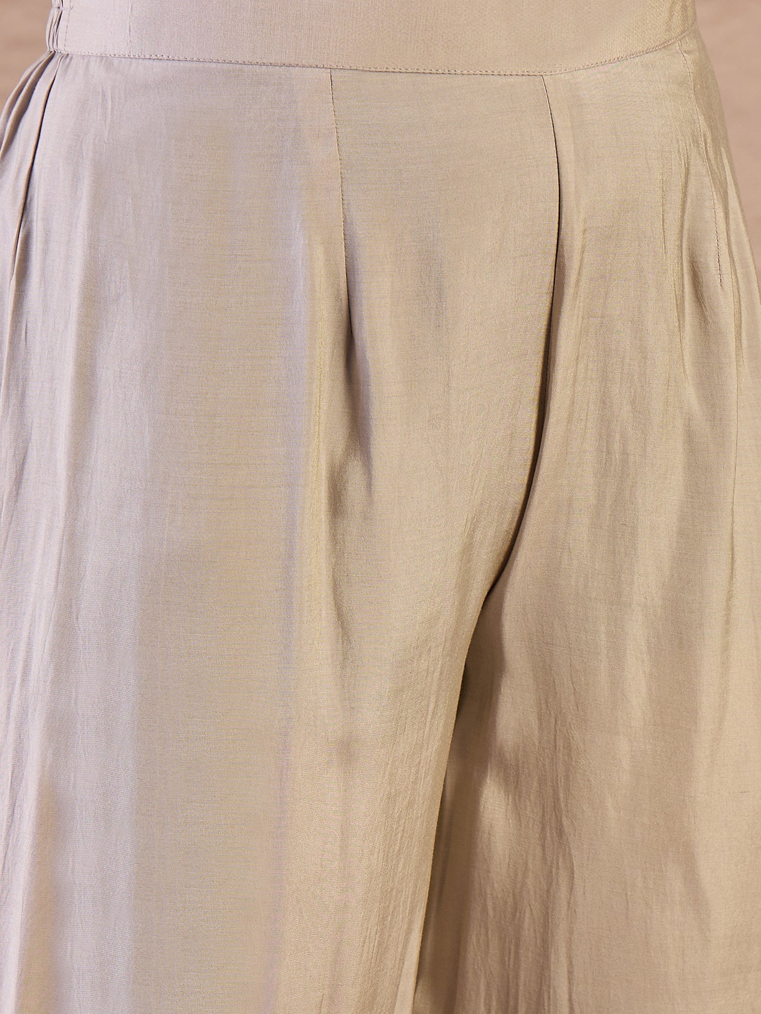 Ivory and gold-toned yoke design Kurta with Palazzos with dupatta