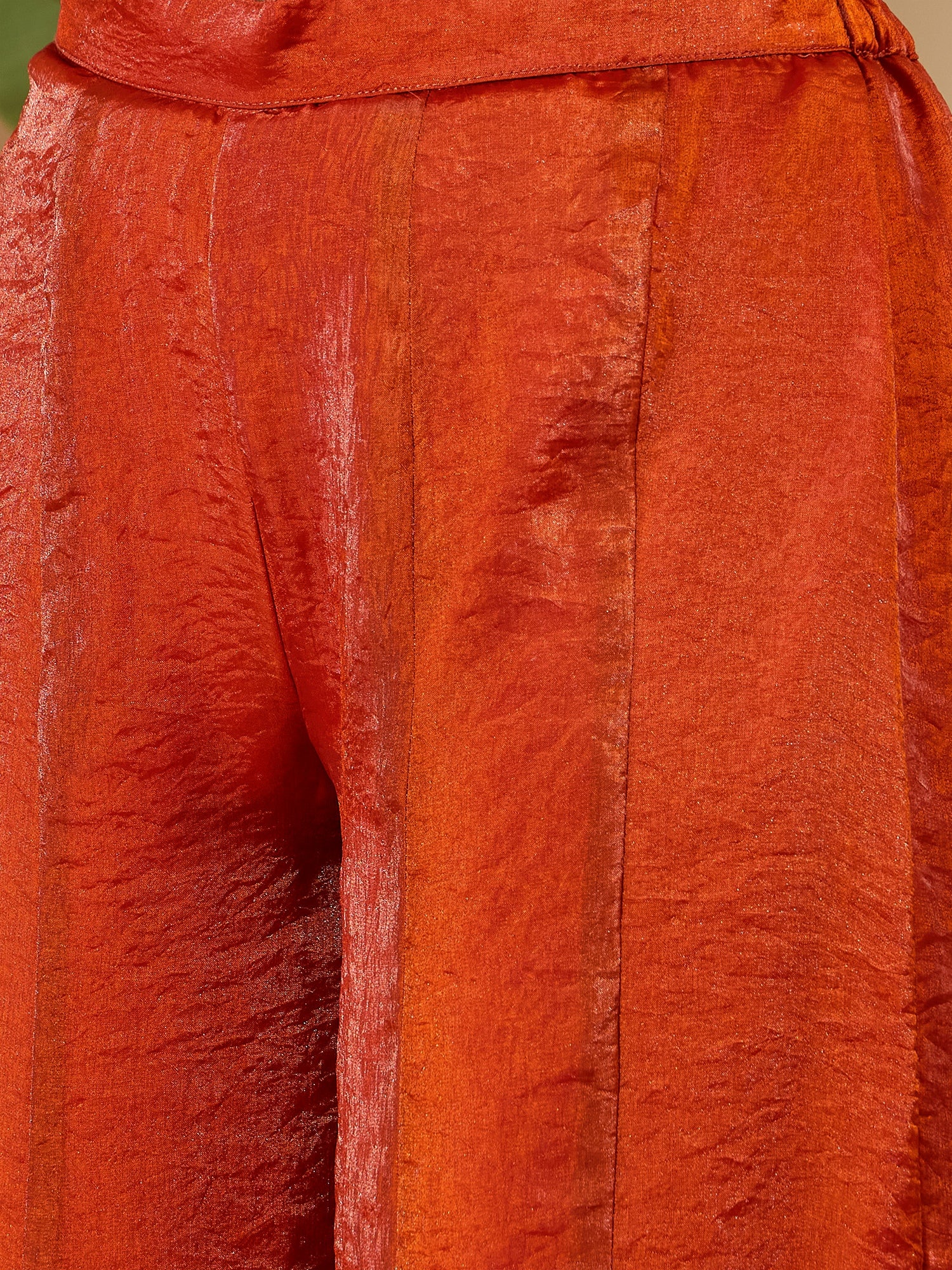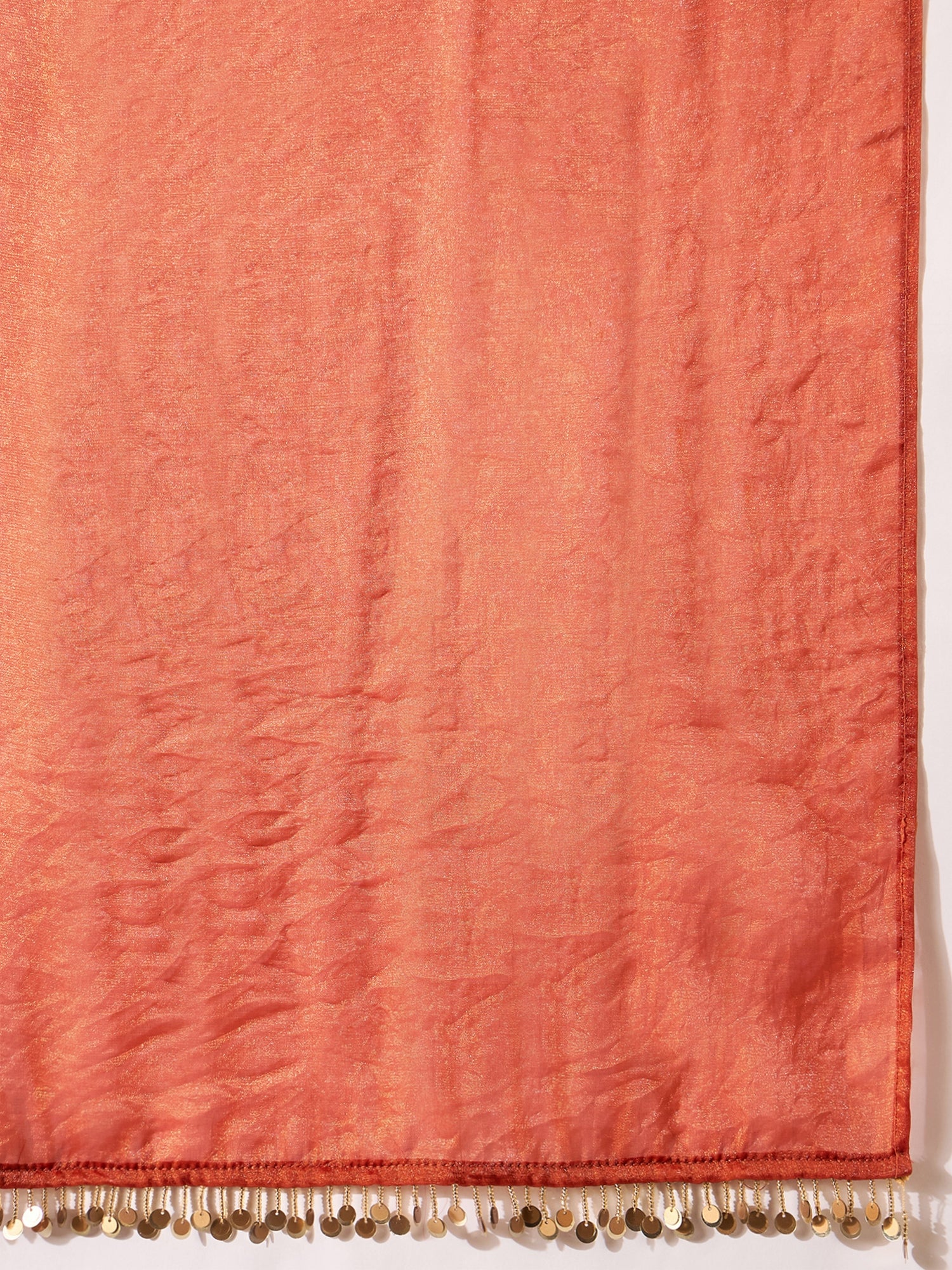 Rust & Gold Embroidered Kurta with Palazzos & Dupatta
