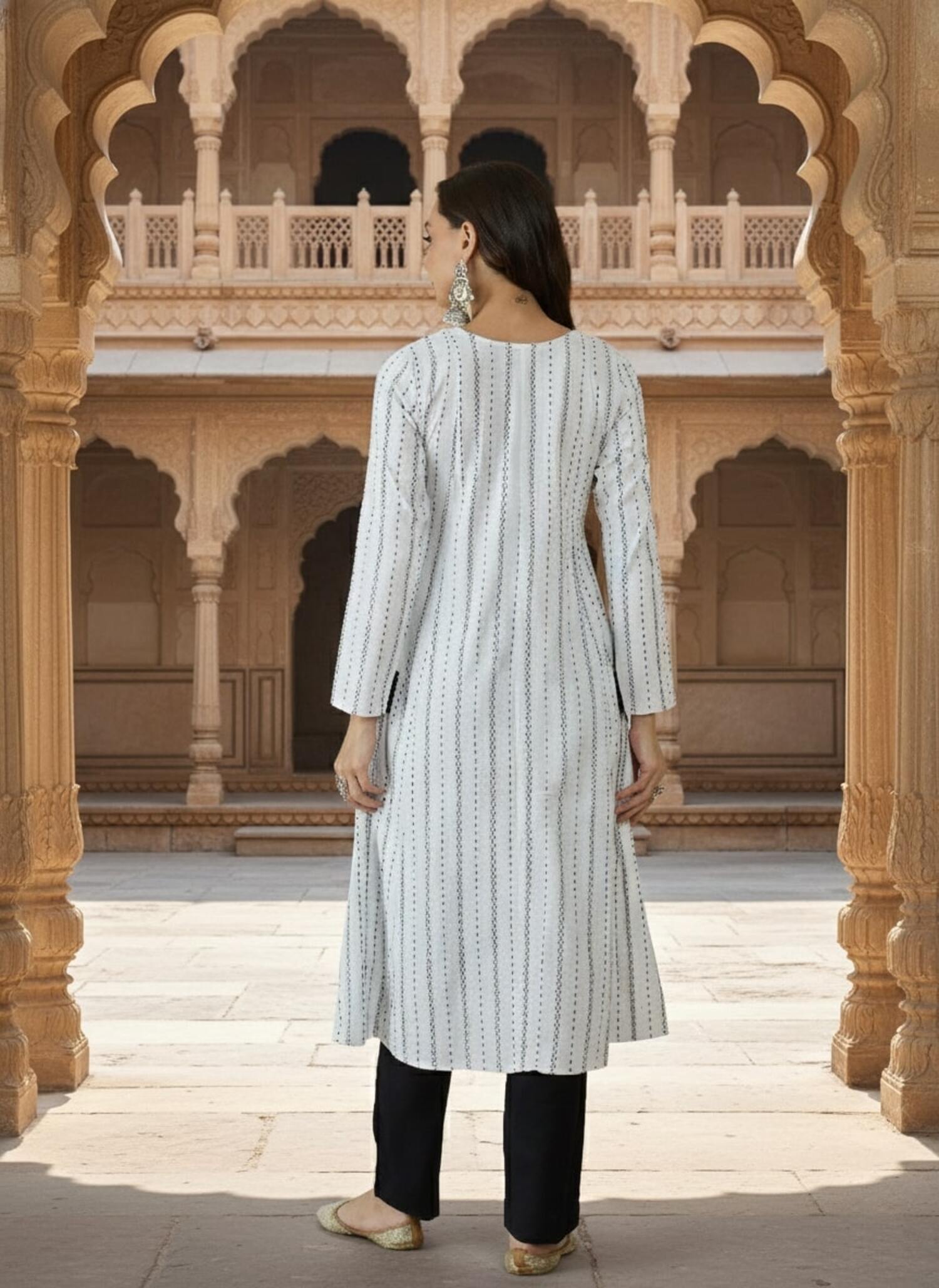 Ready to Ship products are dispatched within 3 days. Our usual shipping time is around 7 days for items bought unstitched / semi stitched, items bought with Tailoring Options are about 10 - 12 days shipping time.