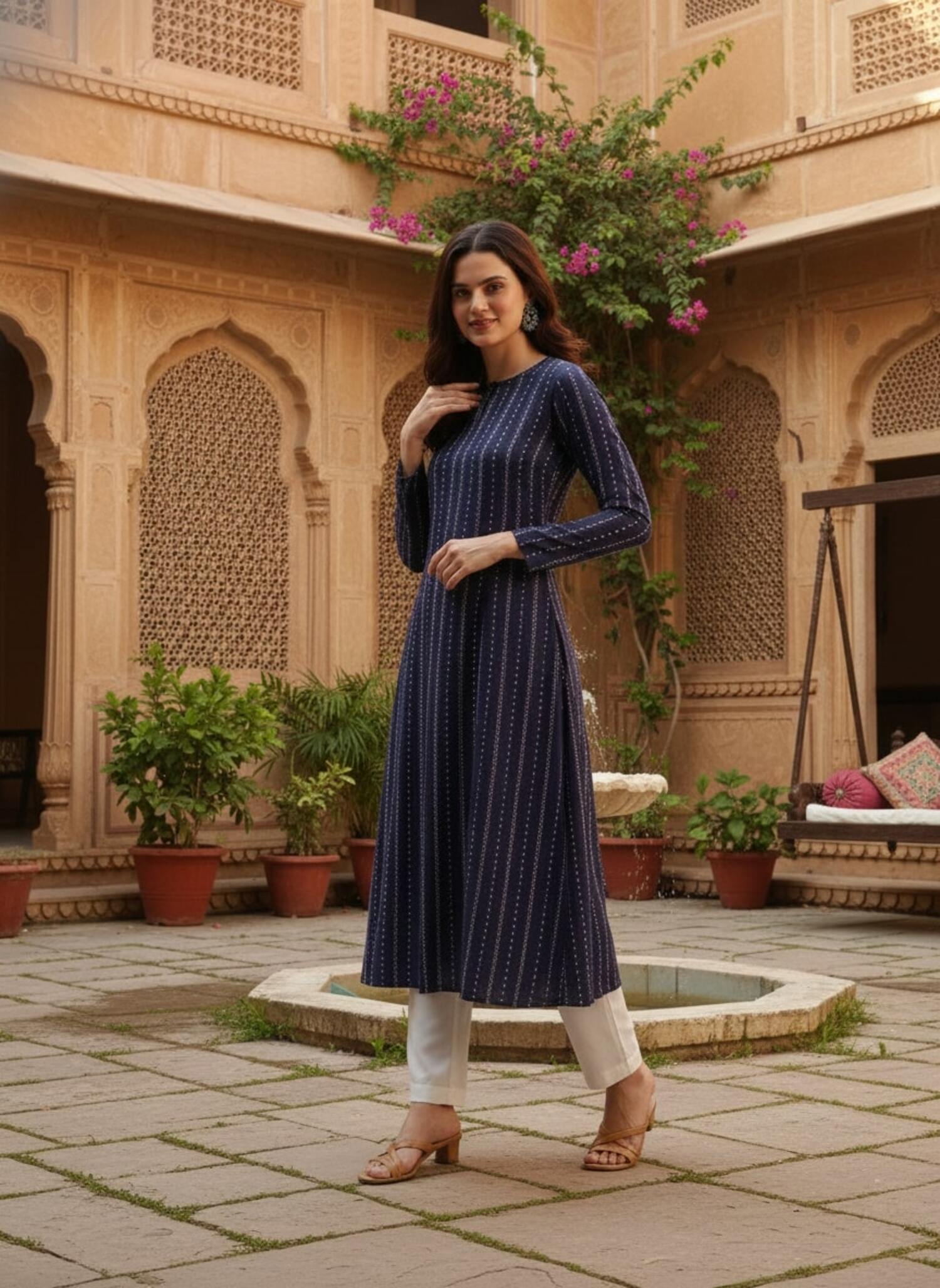 Ready to Ship products are dispatched within 3 days. Our usual shipping time is around 7 days for items bought unstitched / semi stitched, items bought with Tailoring Options are about 10 - 12 days shipping time.