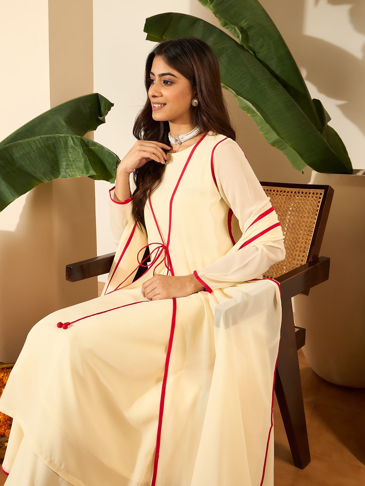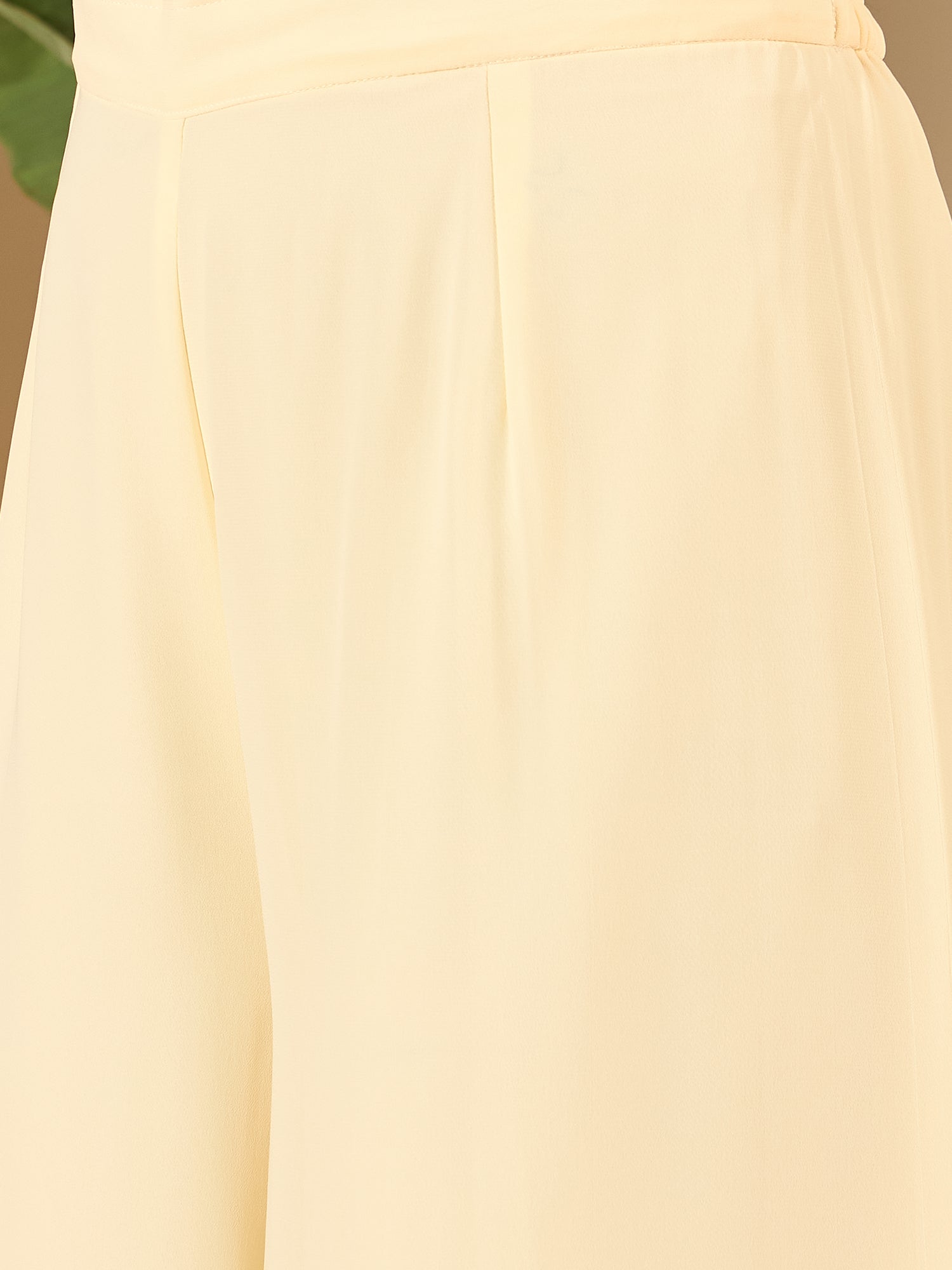 Cream-coloured solid Kurta with Palazzos with dupatta
