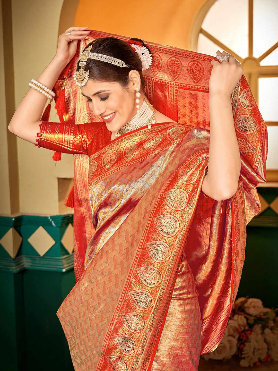 This Women Orange Soft Silk Zari Woven Traditional Saree is intricately designed with luxurious Swaroski Diamonds, adding a touch of elegance and glamour to any occasion. Made with soft and lightweight silk, it drapes beautifully and offers maximum comfort. Elevate your traditional look with this exquisite saree.