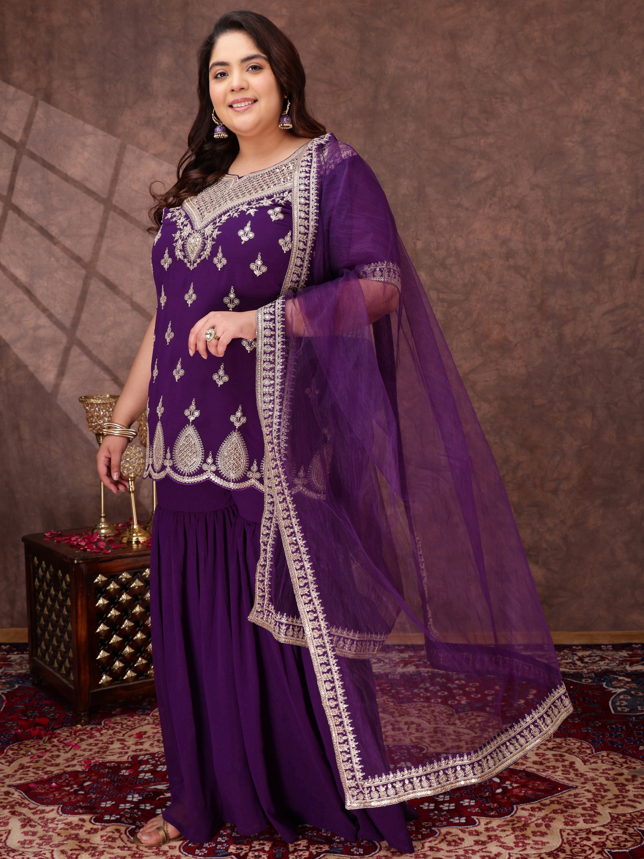 Purple embroidered Kurta with Sharara with dupatta