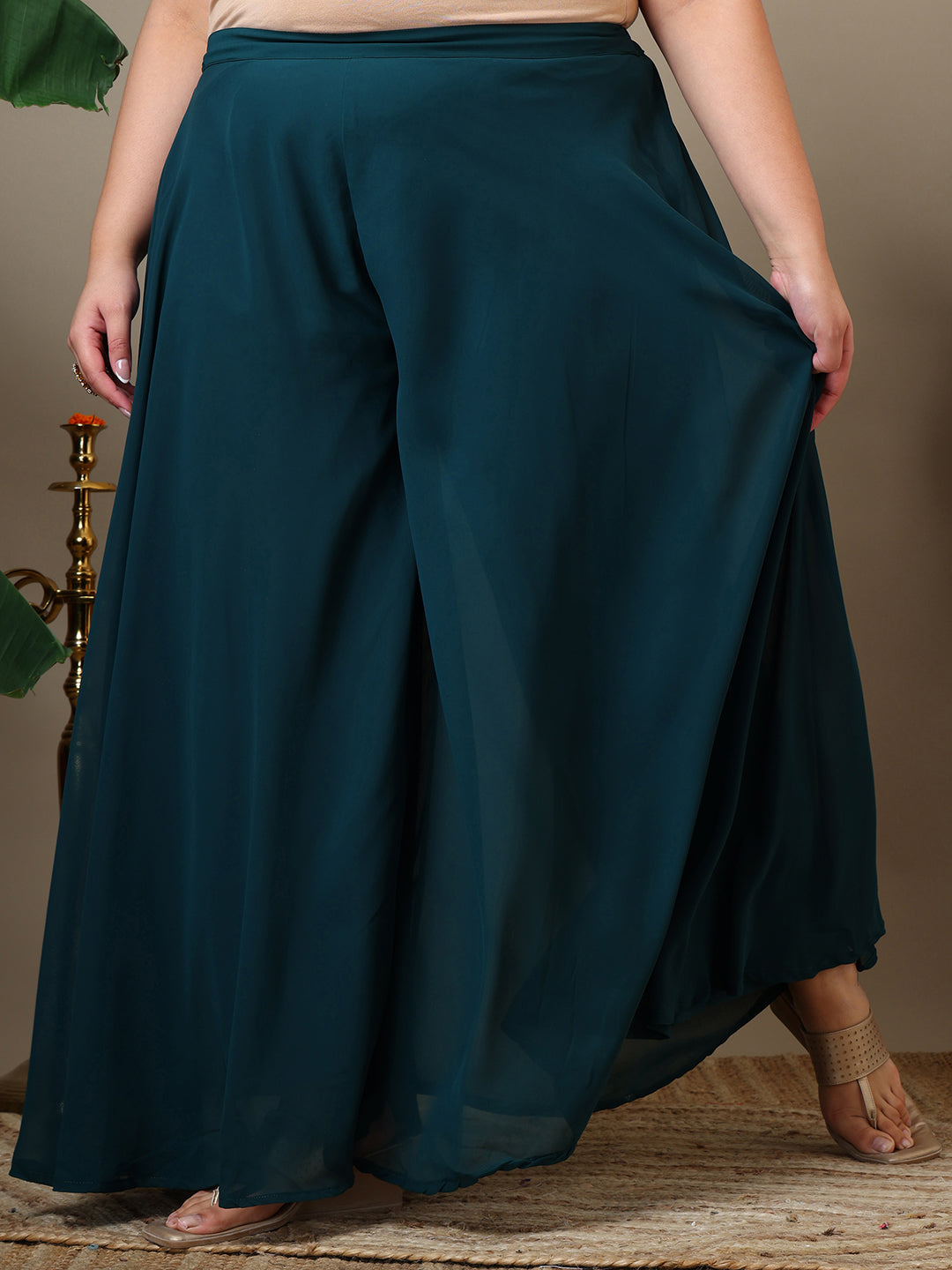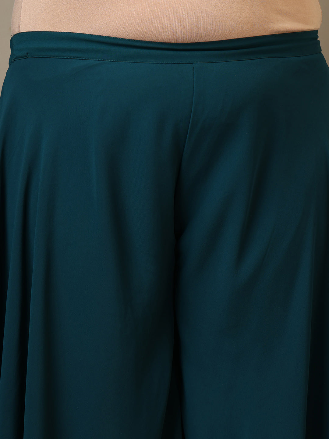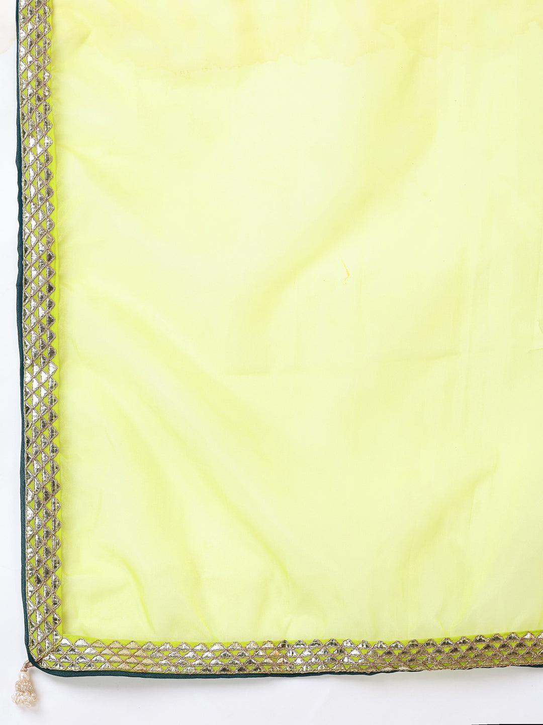Lime Green & Teal Embroidered Kurta with Palazzos & Dupatta