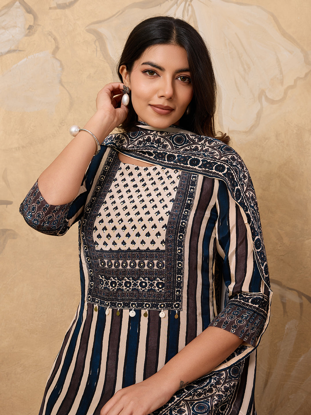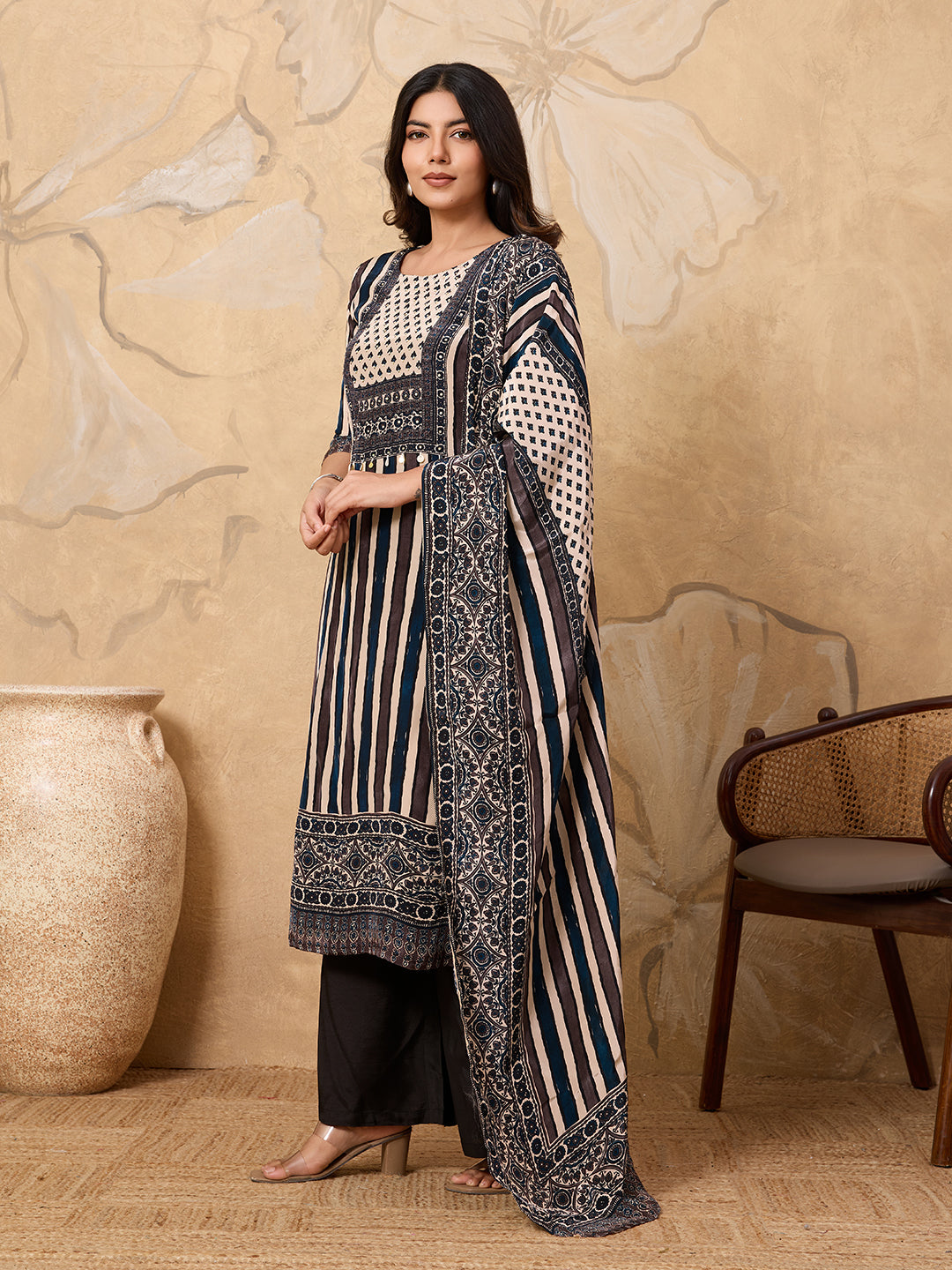 TOP: Pure Crepe, TOP INNER: Pure Mul, BOTTOM: Pure Shantoon, DUPATTA: Pure Crepe, Dry Clean