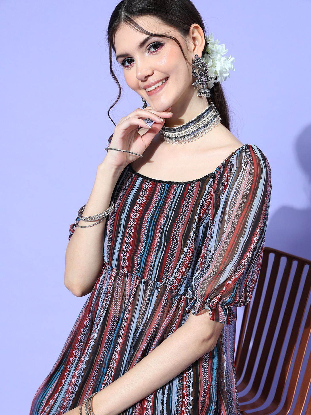 Flaunt your love for Indian wear by dressing in this fashionable kurta set. Featuring a well-crafted round neck and above knee length, this kurta set will lend you a distinguished appeal.