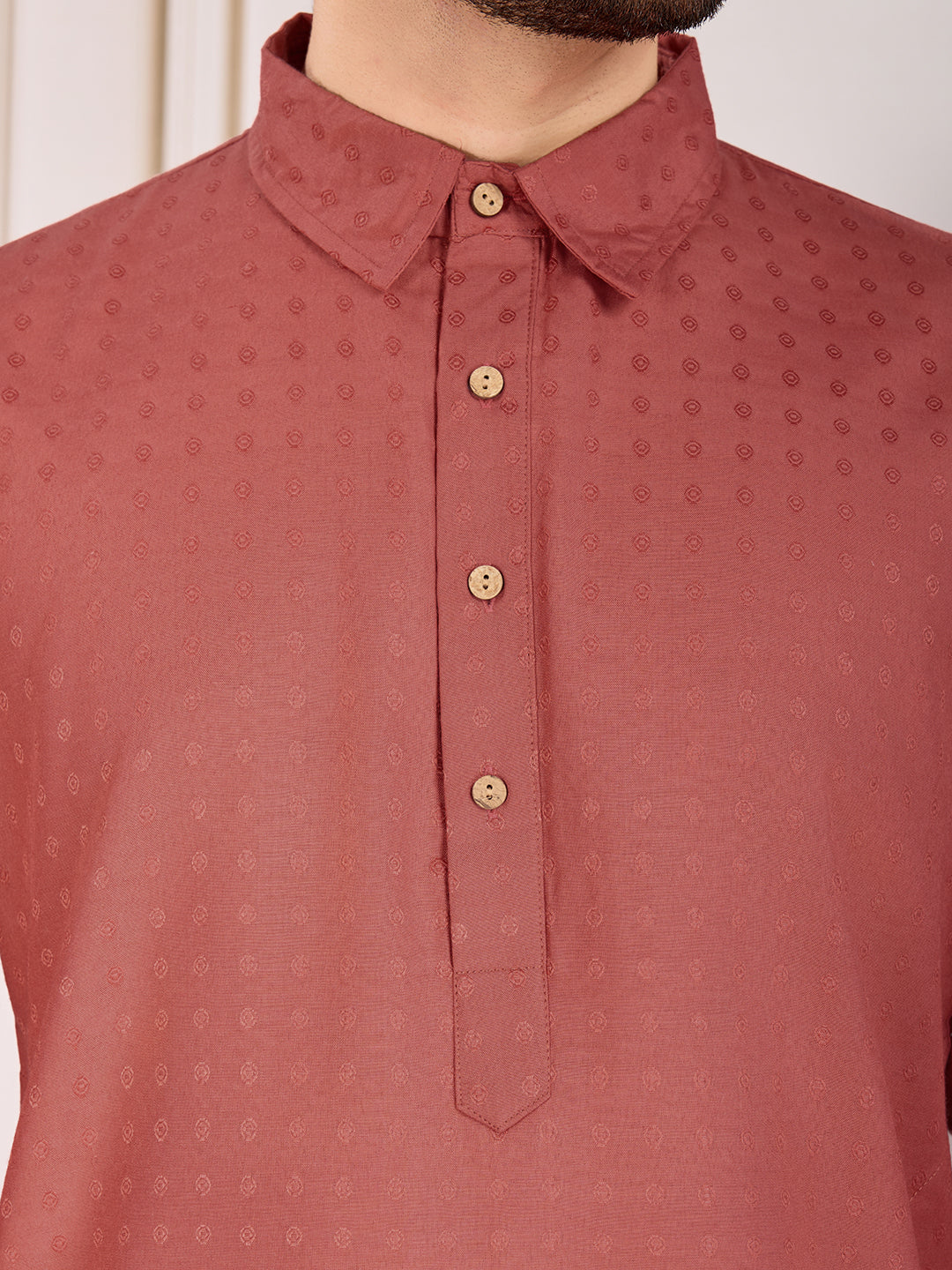 Elevate your traditional wardrobe with our Peach Kurta Set. The woven design and shirt collar give it a sophisticated touch, while the regular cotton blend ensures comfort. The knee-length kurta with straight hem and side slits adds elegance, and the elasticated waistband and slip-on closure of the white dhoti pant provide ease of wear. Perfect for any occasion.