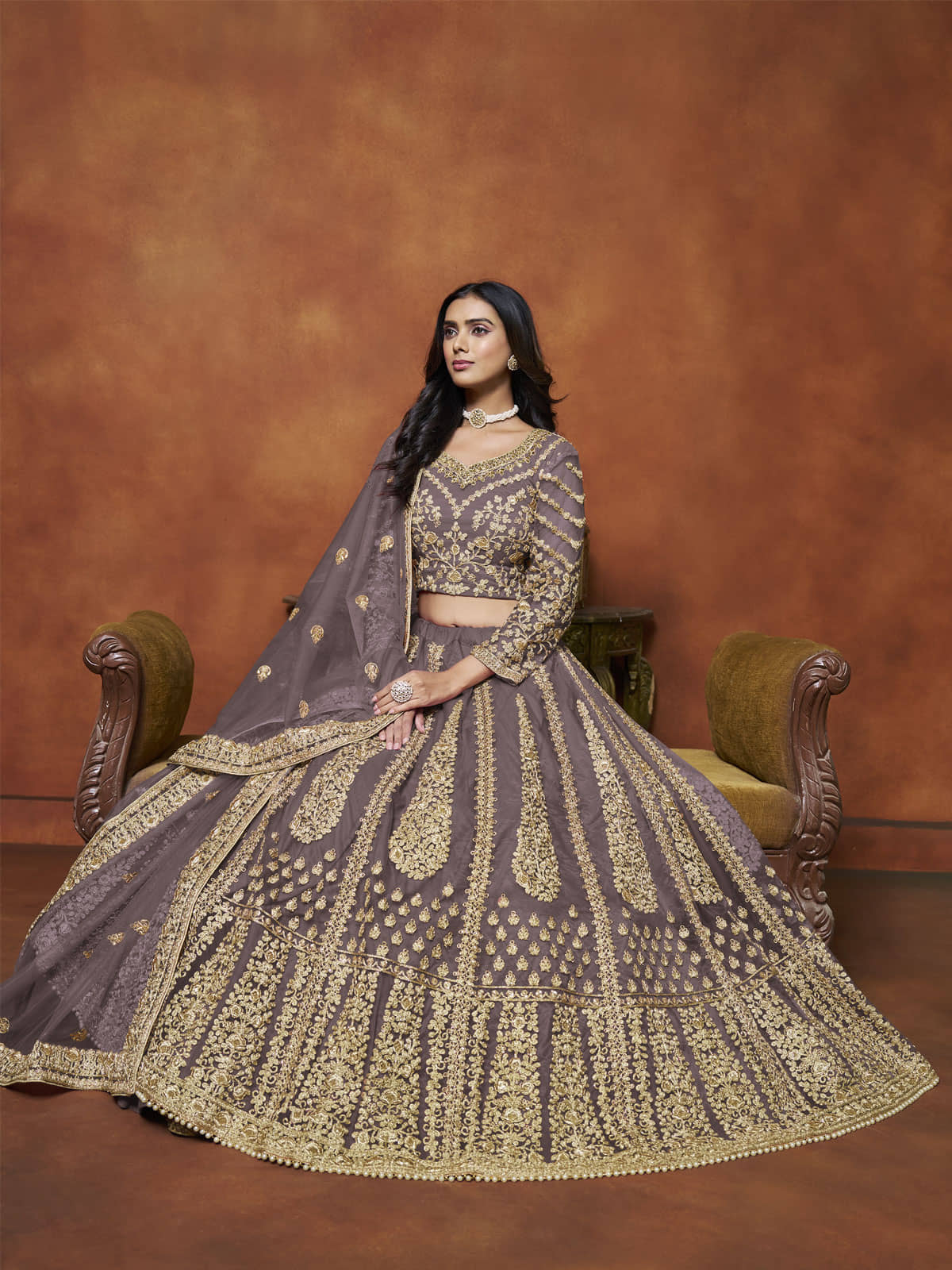 Elevate your engagement look with this exquisite purple mauve net lehenga choli, adorned with intricate zari embroidery that enhances its elegance. The ensemble includes a matching choli and dupatta, perfectly crafted to create a harmonious and sophisticated appearance. Ideal for making a memorable impression, this lehenga choli blends traditional craftsmanship with contemporary style.